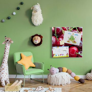 Die banjado Design Magnettafel mit Motiv Motiv Kirschen bringt Ordnung in Ihr Zettelchaos. Fotos, Termine, Notizen oder Rezepte lassen Sich hier stilvoll mit Magneten ordnen, Sie behalten alles im Blick. An der Pinnwand halten alle handelsüblichen Magnete. Mit dieser Pinnwand aus Metall haben Sie auch ohne Notizen und Magnete ein schönes Dekoelement. Das Quadratische Format bietet Ihnen ausreichend Platz um alle wichtigen Informationen im Blick zu behalten.