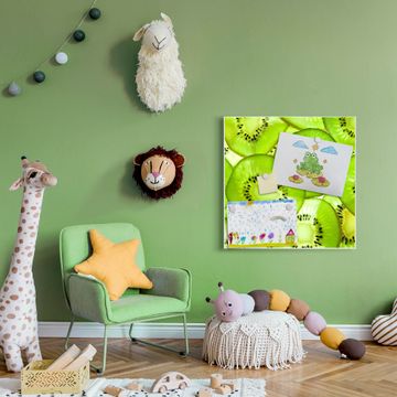 Die banjado Design Magnettafel mit Motiv Motiv Kiwi bringt Ordnung in Ihr Zettelchaos. Fotos, Termine, Notizen oder Rezepte lassen Sich hier stilvoll mit Magneten ordnen, Sie behalten alles im Blick. An der Pinnwand halten alle handelsüblichen Magnete. Mit dieser Pinnwand aus Metall haben Sie auch ohne Notizen und Magnete ein schönes Dekoelement. Das Quadratische Format bietet Ihnen ausreichend Platz um alle wichtigen Informationen im Blick zu behalten.