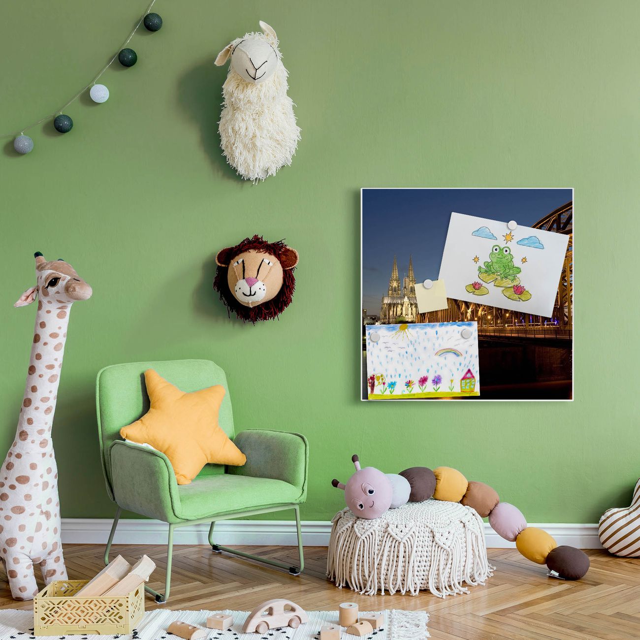 Die banjado Design Magnettafel mit Motiv Motiv Köln bringt Ordnung in Ihr Zettelchaos. Fotos, Termine, Notizen oder Rezepte lassen Sich hier stilvoll mit Magneten ordnen, Sie behalten alles im Blick. An der Pinnwand halten alle handelsüblichen Magnete. Mit dieser Pinnwand aus Metall haben Sie auch ohne Notizen und Magnete ein schönes Dekoelement. Das Quadratische Format bietet Ihnen ausreichend Platz um alle wichtigen Informationen im Blick zu behalten.