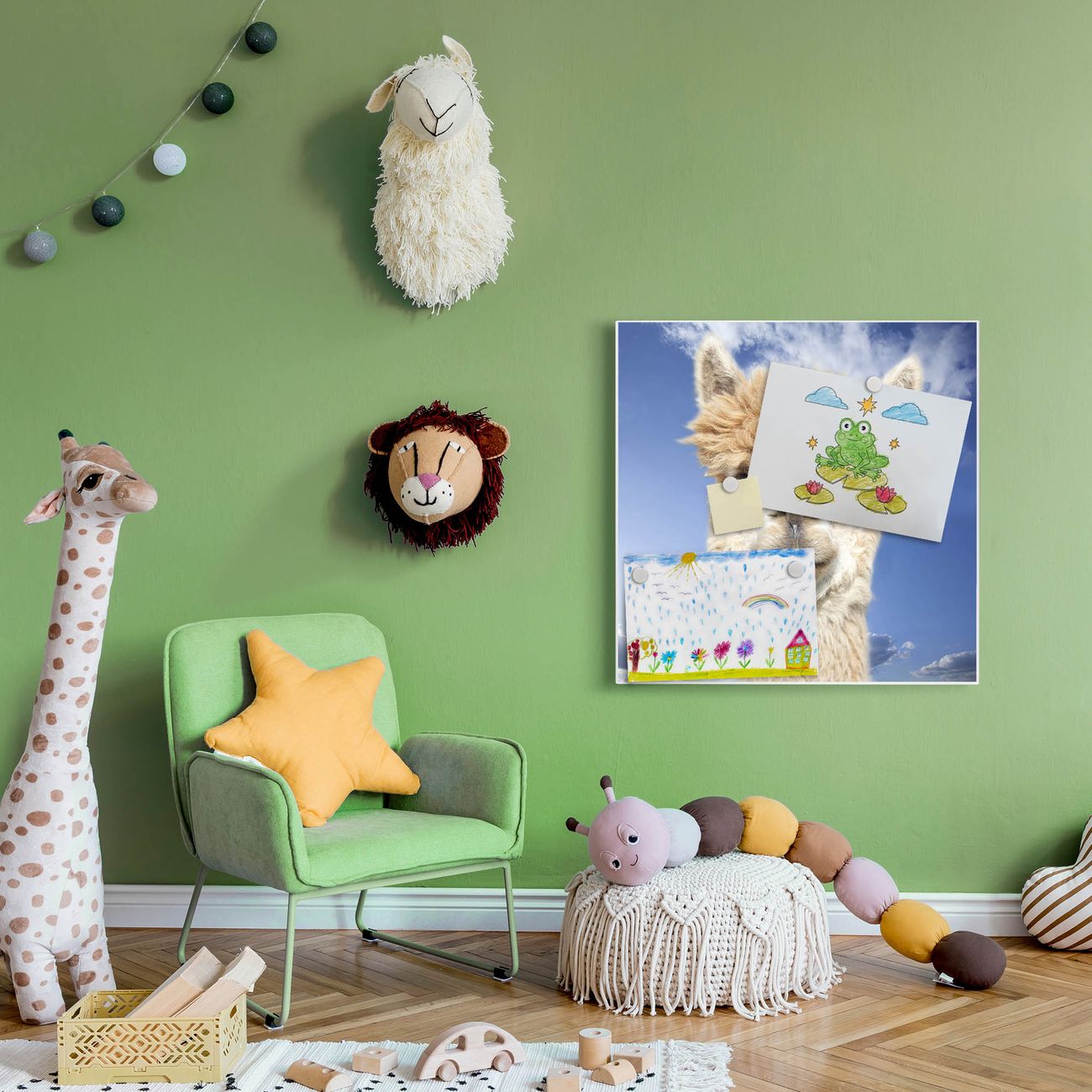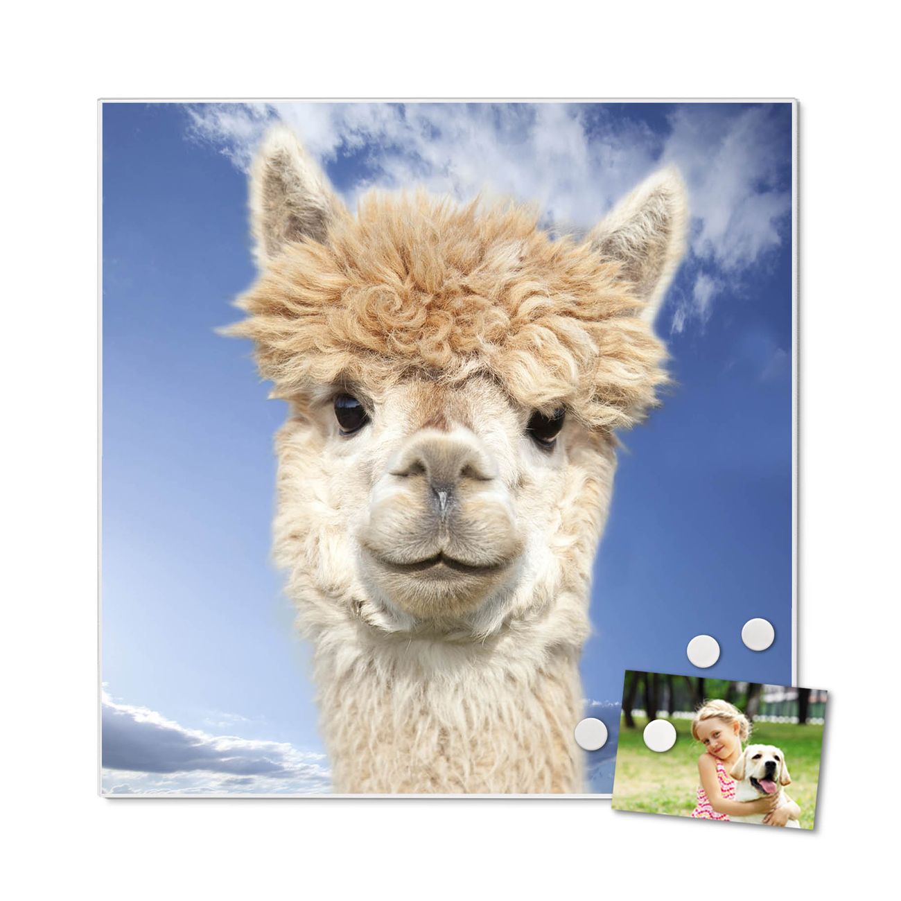 Die banjado Design Magnettafel mit Motiv Motiv Lama bringt Ordnung in Ihr Zettelchaos. Fotos, Termine, Notizen oder Rezepte lassen Sich hier stilvoll mit Magneten ordnen, Sie behalten alles im Blick. An der Pinnwand halten alle handelsüblichen Magnete. Mit dieser Pinnwand aus Metall haben Sie auch ohne Notizen und Magnete ein schönes Dekoelement. Das Quadratische Format bietet Ihnen ausreichend Platz um alle wichtigen Informationen im Blick zu behalten.