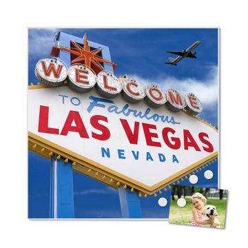 Die banjado Design Magnettafel mit Motiv Motiv Las Vegas bringt Ordnung in Ihr Zettelchaos. Fotos, Termine, Notizen oder Rezepte lassen Sich hier stilvoll mit Magneten ordnen, Sie behalten alles im Blick. An der Pinnwand halten alle handelsüblichen Magnete. Mit dieser Pinnwand aus Metall haben Sie auch ohne Notizen und Magnete ein schönes Dekoelement. Das Quadratische Format bietet Ihnen ausreichend Platz um alle wichtigen Informationen im Blick zu behalten.