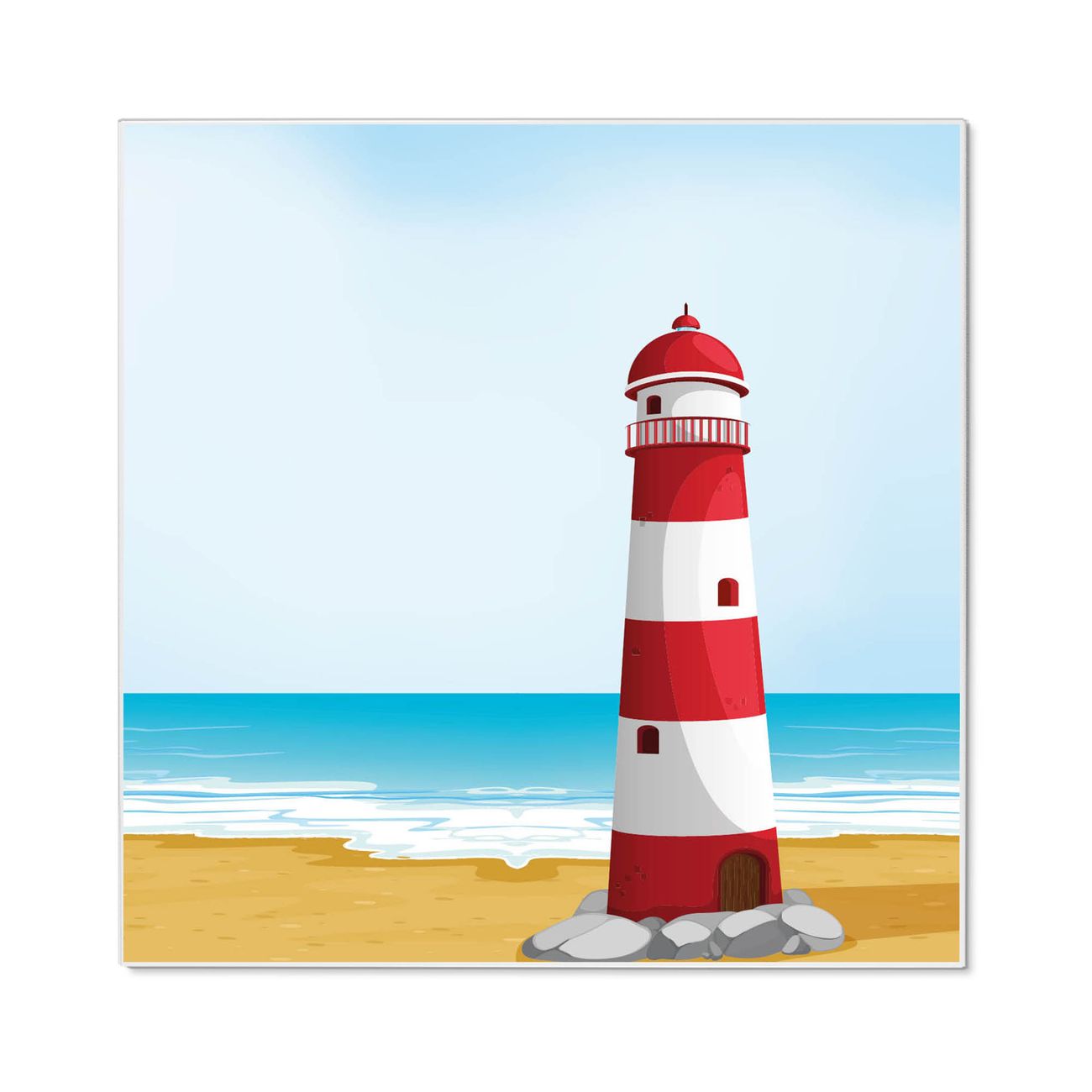 Stahl Magnettafel 50x50cm Leuchtturm Illustration
