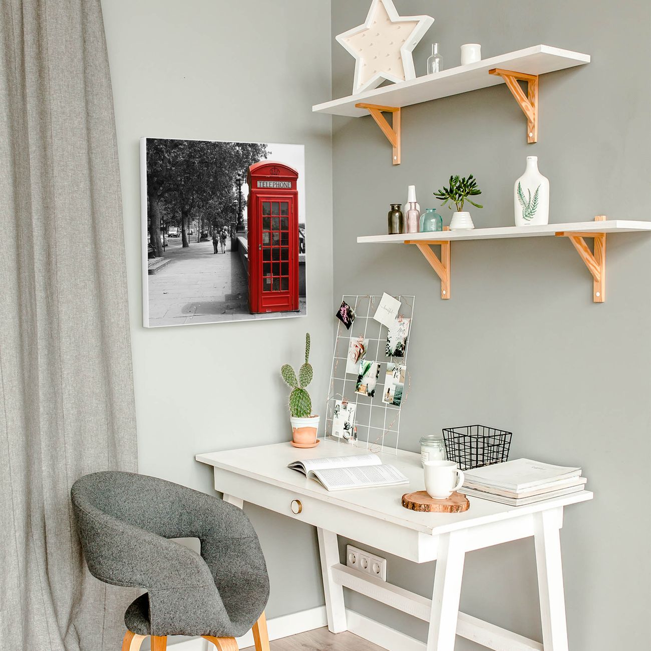 Stahl Magnettafel 50x50cm London Red Telephone