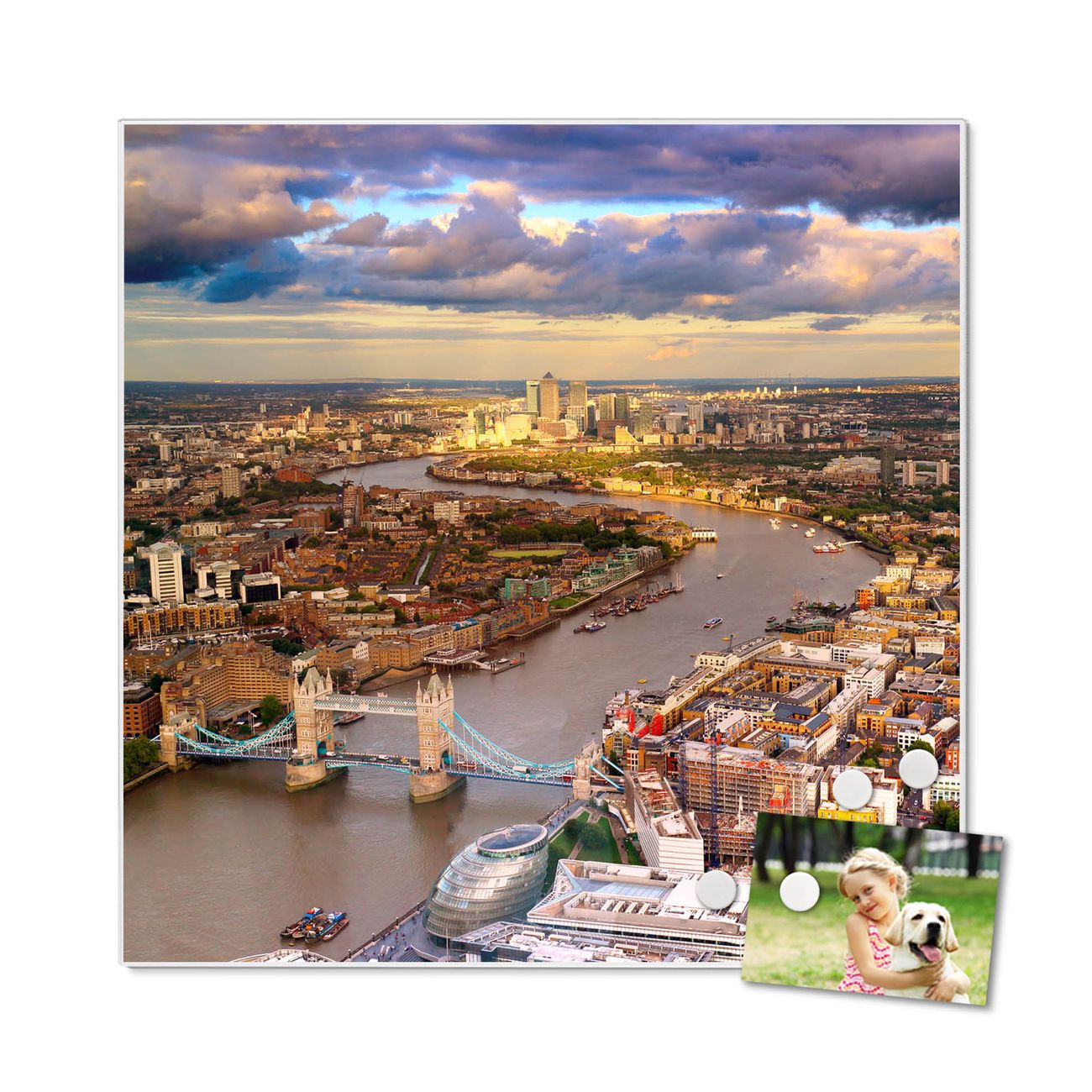 Die banjado Design Magnettafel mit Motiv Motiv London bringt Ordnung in Ihr Zettelchaos. Fotos, Termine, Notizen oder Rezepte lassen Sich hier stilvoll mit Magneten ordnen, Sie behalten alles im Blick. An der Pinnwand halten alle handelsüblichen Magnete. Mit dieser Pinnwand aus Metall haben Sie auch ohne Notizen und Magnete ein schönes Dekoelement. Das Quadratische Format bietet Ihnen ausreichend Platz um alle wichtigen Informationen im Blick zu behalten.