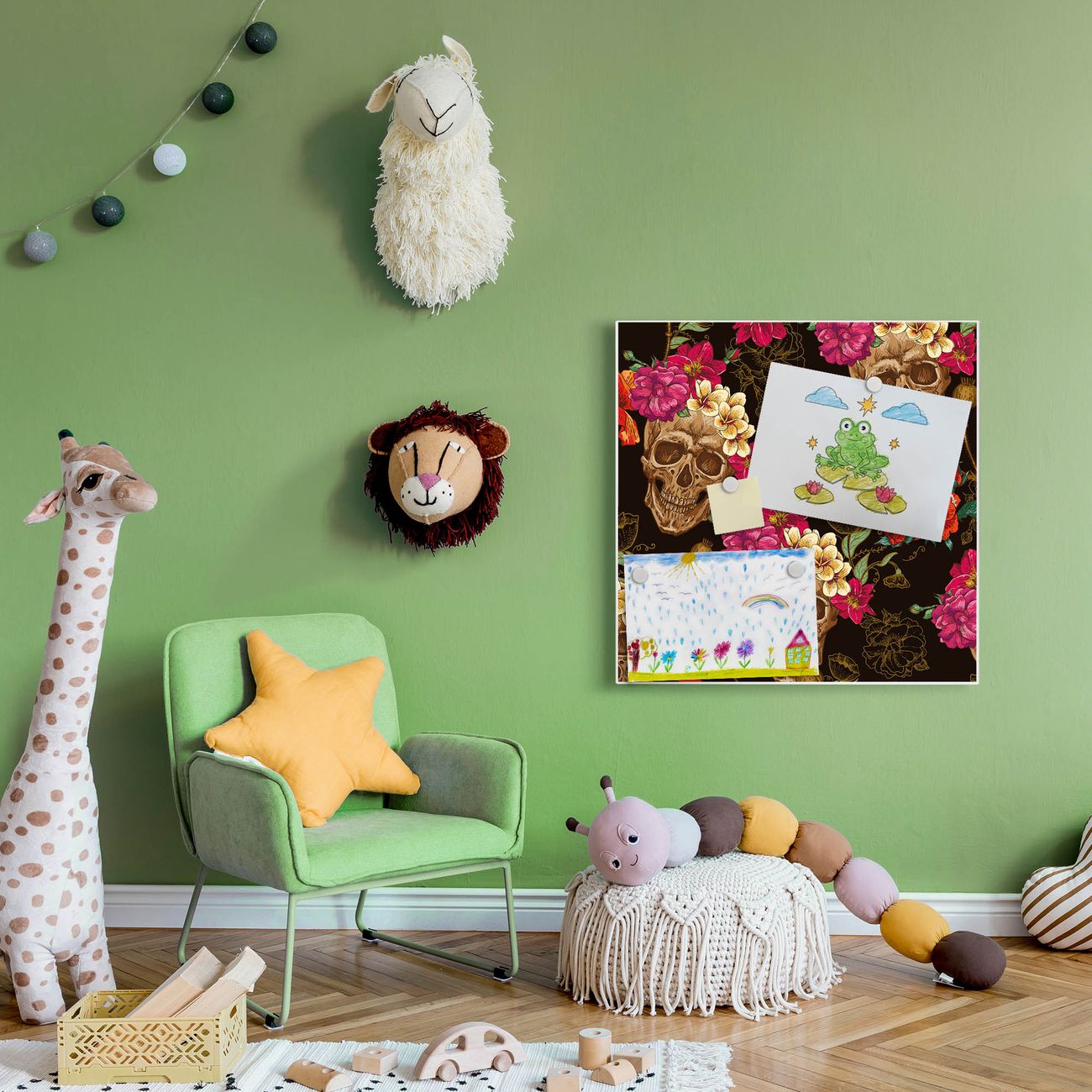 Die banjado Design Magnettafel mit Motiv Motiv Los Dias de Muertos bringt Ordnung in Ihr Zettelchaos. Fotos, Termine, Notizen oder Rezepte lassen Sich hier stilvoll mit Magneten ordnen, Sie behalten alles im Blick. An der Pinnwand halten alle handelsüblichen Magnete. Mit dieser Pinnwand aus Metall haben Sie auch ohne Notizen und Magnete ein schönes Dekoelement. Das Quadratische Format bietet Ihnen ausreichend Platz um alle wichtigen Informationen im Blick zu behalten.