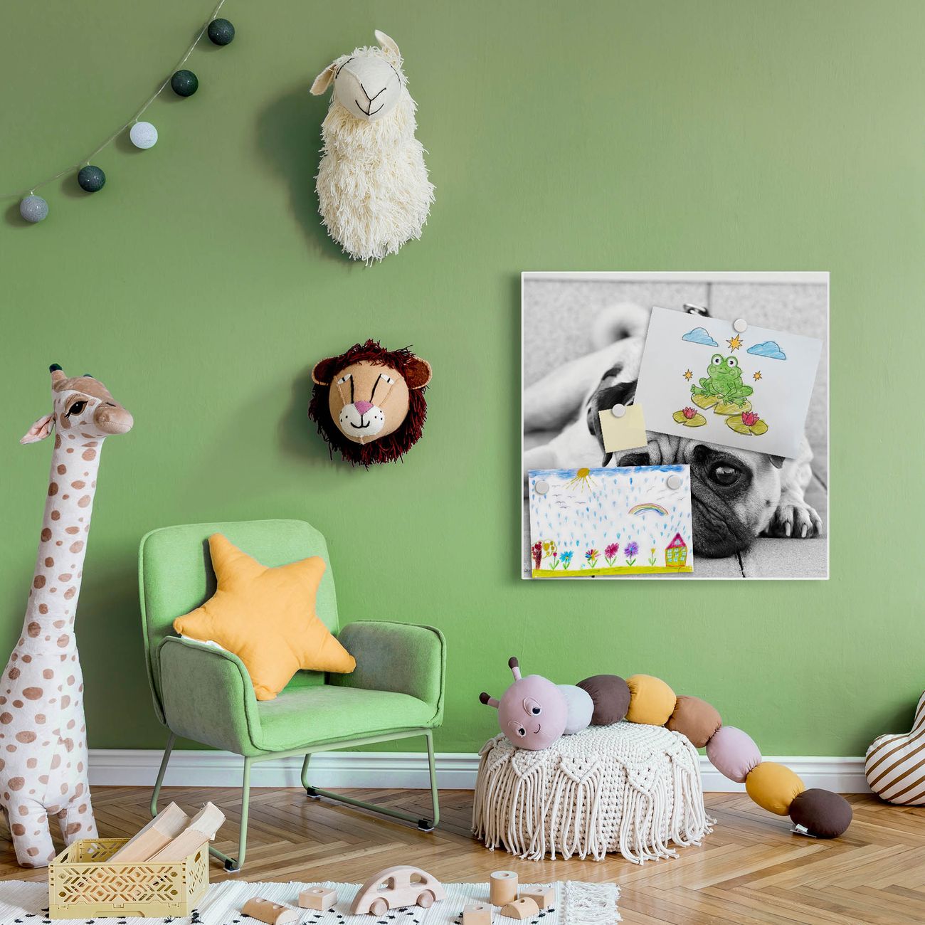 Die banjado Design Magnettafel mit Motiv Motiv Lotty bringt Ordnung in Ihr Zettelchaos. Fotos, Termine, Notizen oder Rezepte lassen Sich hier stilvoll mit Magneten ordnen, Sie behalten alles im Blick. An der Pinnwand halten alle handelsüblichen Magnete. Mit dieser Pinnwand aus Metall haben Sie auch ohne Notizen und Magnete ein schönes Dekoelement. Das Quadratische Format bietet Ihnen ausreichend Platz um alle wichtigen Informationen im Blick zu behalten.