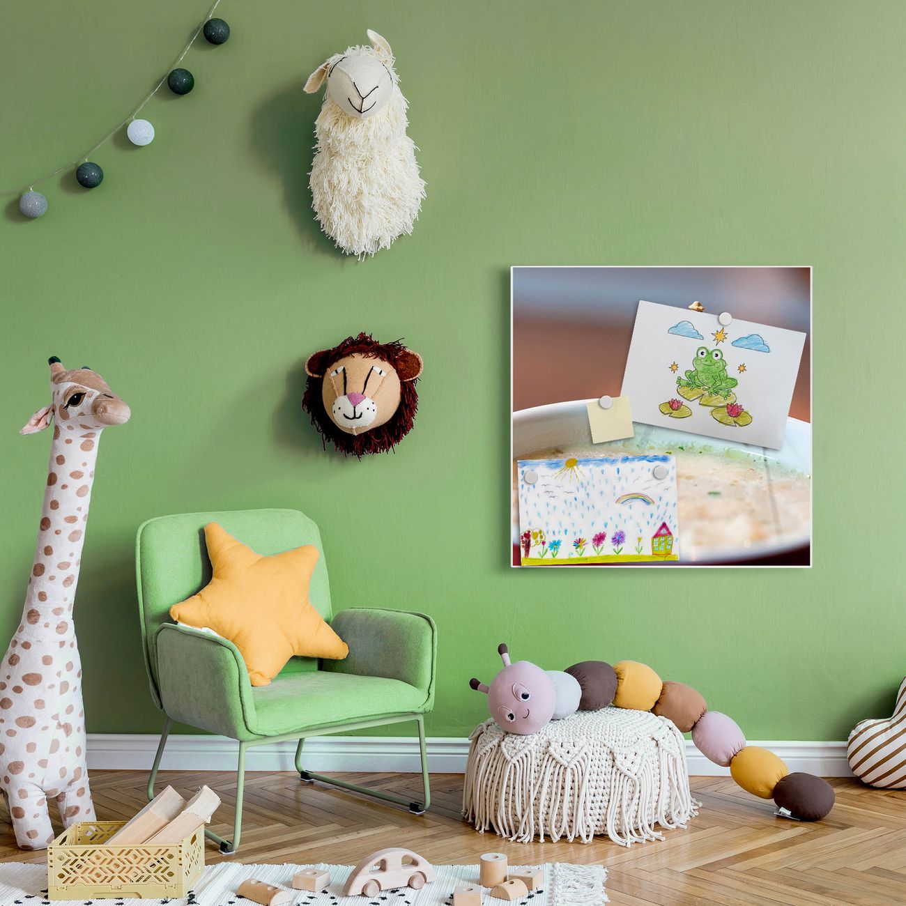 Die banjado Design Magnettafel mit Motiv Motiv Männersache bringt Ordnung in Ihr Zettelchaos. Fotos, Termine, Notizen oder Rezepte lassen Sich hier stilvoll mit Magneten ordnen, Sie behalten alles im Blick. An der Pinnwand halten alle handelsüblichen Magnete. Mit dieser Pinnwand aus Metall haben Sie auch ohne Notizen und Magnete ein schönes Dekoelement. Das Quadratische Format bietet Ihnen ausreichend Platz um alle wichtigen Informationen im Blick zu behalten.