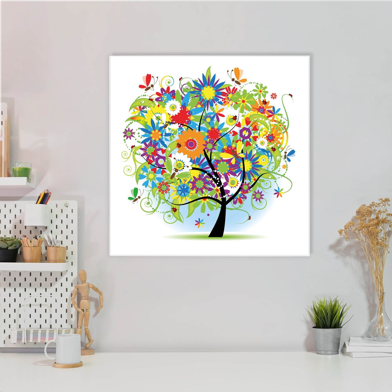 Die banjado Design Magnettafel mit Motiv Motiv Märchenzauberbaum bringt Ordnung in Ihr Zettelchaos. Fotos, Termine, Notizen oder Rezepte lassen Sich hier stilvoll mit Magneten ordnen, Sie behalten alles im Blick. An der Pinnwand halten alle handelsüblichen Magnete. Mit dieser Pinnwand aus Metall haben Sie auch ohne Notizen und Magnete ein schönes Dekoelement. Das Quadratische Format bietet Ihnen ausreichend Platz um alle wichtigen Informationen im Blick zu behalten.