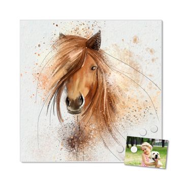 Die banjado Design Magnettafel mit Motiv Motiv Magic Horse bringt Ordnung in Ihr Zettelchaos. Fotos, Termine, Notizen oder Rezepte lassen Sich hier stilvoll mit Magneten ordnen, Sie behalten alles im Blick. An der Pinnwand halten alle handelsüblichen Magnete. Mit dieser Pinnwand aus Metall haben Sie auch ohne Notizen und Magnete ein schönes Dekoelement. Das Quadratische Format bietet Ihnen ausreichend Platz um alle wichtigen Informationen im Blick zu behalten.