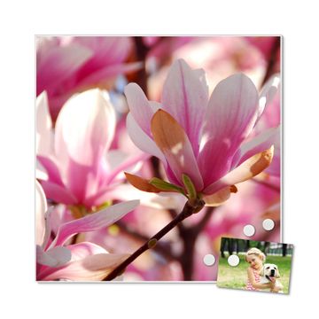 Die banjado Design Magnettafel mit Motiv Motiv Magnolia bringt Ordnung in Ihr Zettelchaos. Fotos, Termine, Notizen oder Rezepte lassen Sich hier stilvoll mit Magneten ordnen, Sie behalten alles im Blick. An der Pinnwand halten alle handelsüblichen Magnete. Mit dieser Pinnwand aus Metall haben Sie auch ohne Notizen und Magnete ein schönes Dekoelement. Das Quadratische Format bietet Ihnen ausreichend Platz um alle wichtigen Informationen im Blick zu behalten.