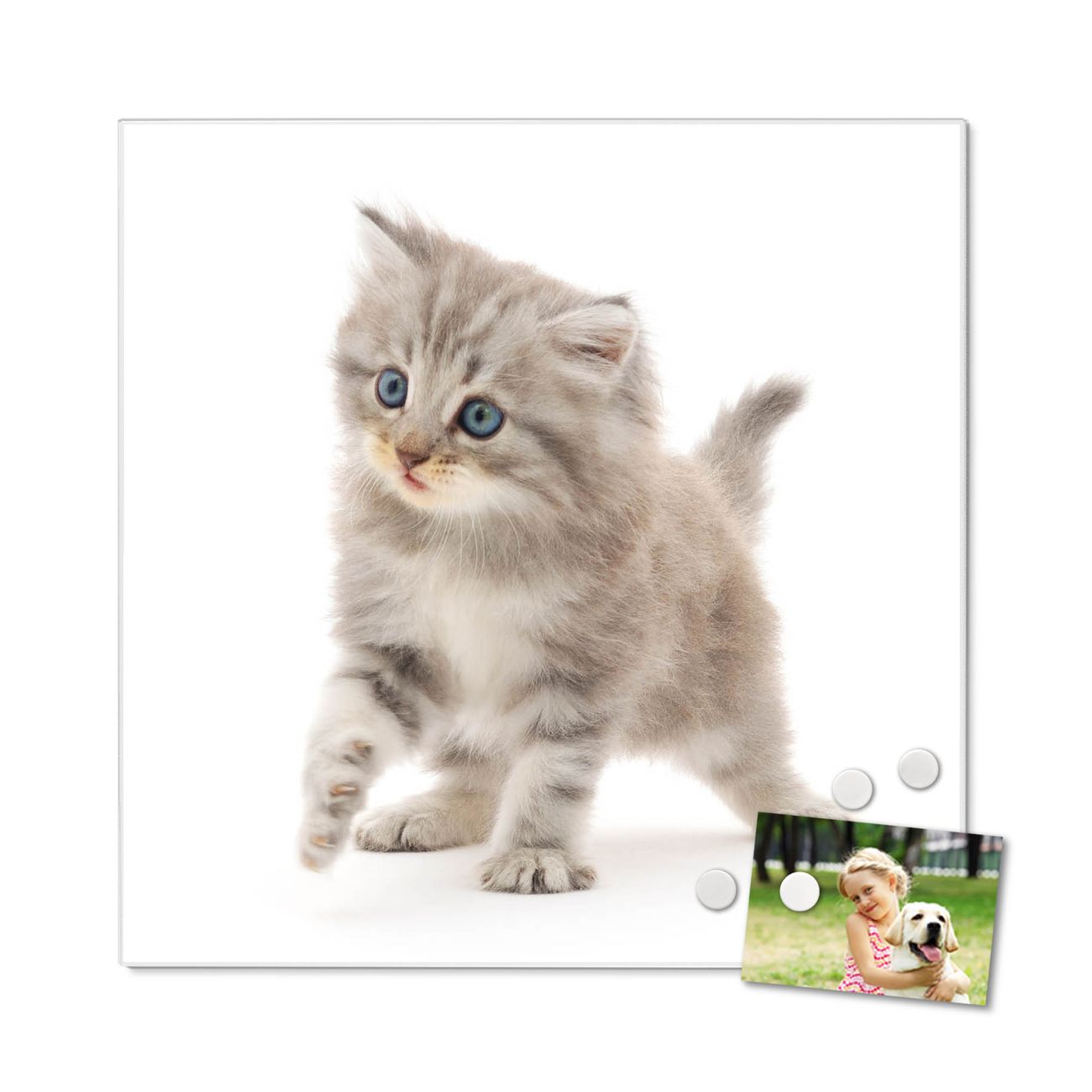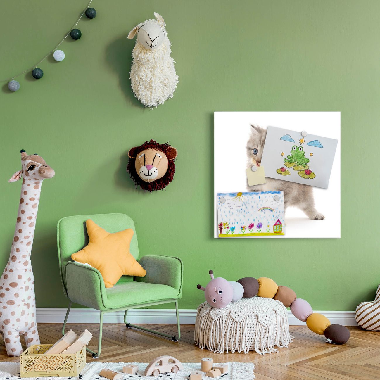 Die banjado Design Magnettafel mit Motiv Motiv Miau bringt Ordnung in Ihr Zettelchaos. Fotos, Termine, Notizen oder Rezepte lassen Sich hier stilvoll mit Magneten ordnen, Sie behalten alles im Blick. An der Pinnwand halten alle handelsüblichen Magnete. Mit dieser Pinnwand aus Metall haben Sie auch ohne Notizen und Magnete ein schönes Dekoelement. Das Quadratische Format bietet Ihnen ausreichend Platz um alle wichtigen Informationen im Blick zu behalten.