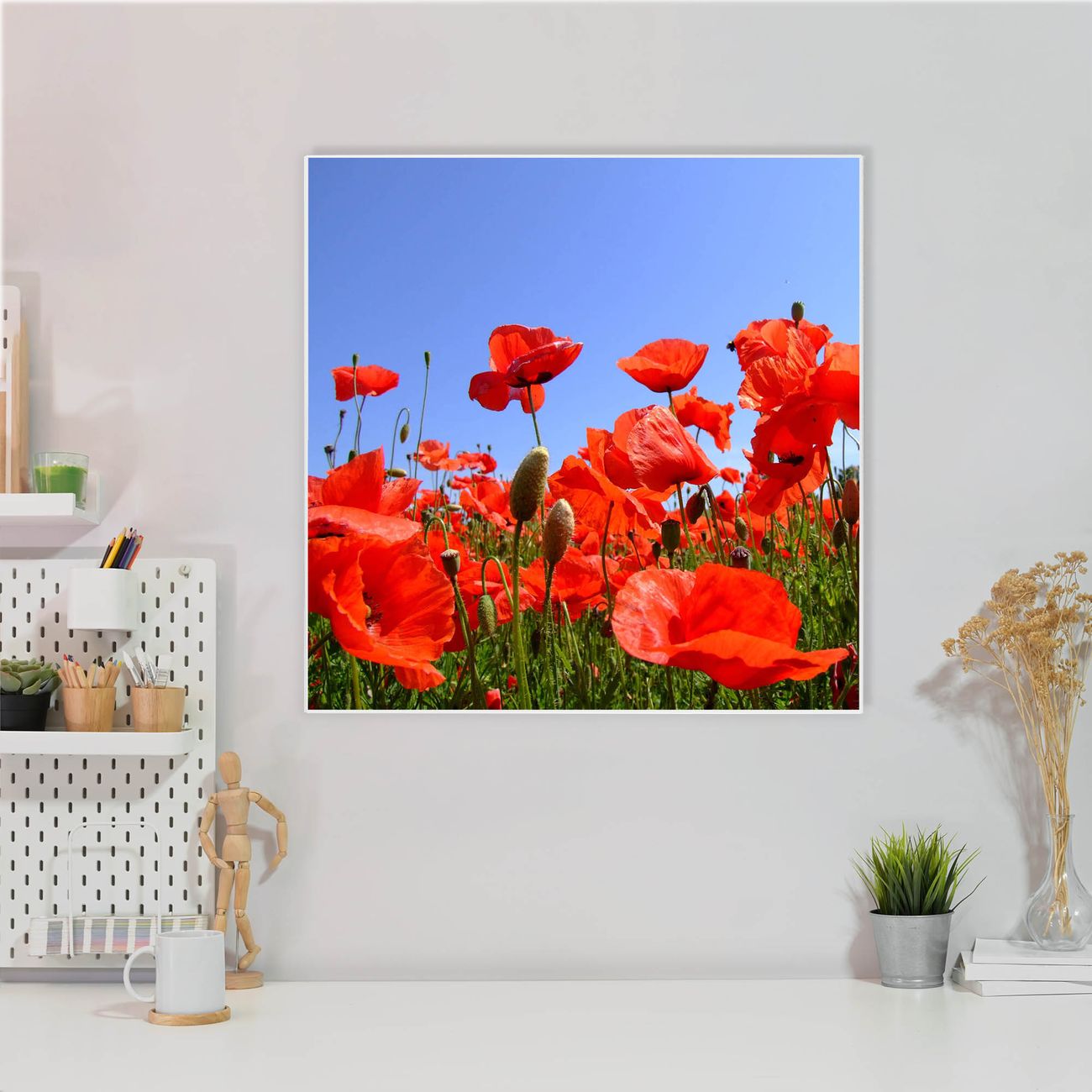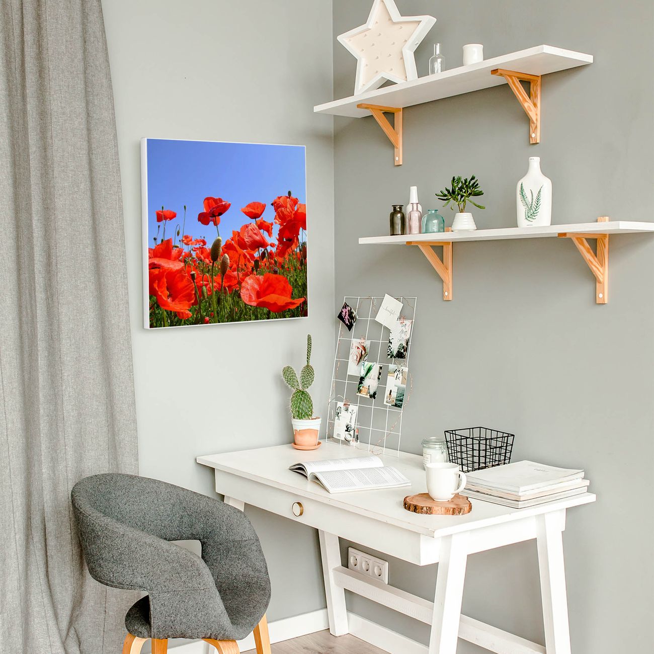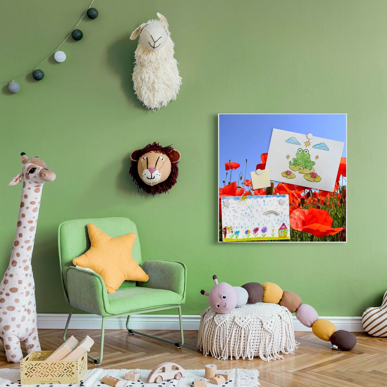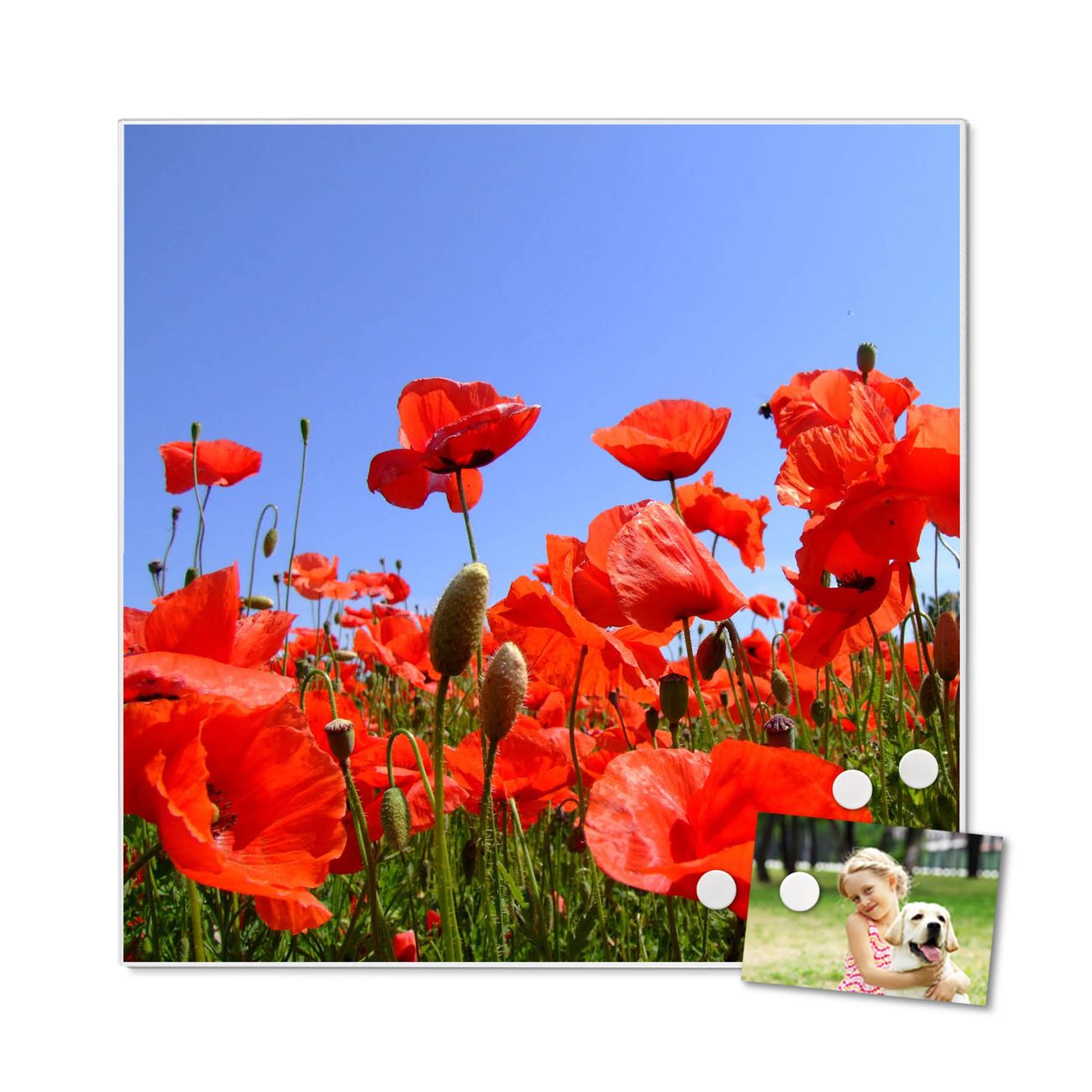 Die banjado Design Magnettafel mit Motiv Motiv Mohnblumen bringt Ordnung in Ihr Zettelchaos. Fotos, Termine, Notizen oder Rezepte lassen Sich hier stilvoll mit Magneten ordnen, Sie behalten alles im Blick. An der Pinnwand halten alle handelsüblichen Magnete. Mit dieser Pinnwand aus Metall haben Sie auch ohne Notizen und Magnete ein schönes Dekoelement. Das Quadratische Format bietet Ihnen ausreichend Platz um alle wichtigen Informationen im Blick zu behalten.