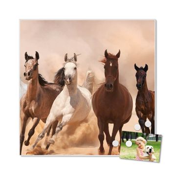 Die banjado Design Magnettafel mit Motiv Motiv Mongolische Stimmung bringt Ordnung in Ihr Zettelchaos. Fotos, Termine, Notizen oder Rezepte lassen Sich hier stilvoll mit Magneten ordnen, Sie behalten alles im Blick. An der Pinnwand halten alle handelsüblichen Magnete. Mit dieser Pinnwand aus Metall haben Sie auch ohne Notizen und Magnete ein schönes Dekoelement. Das Quadratische Format bietet Ihnen ausreichend Platz um alle wichtigen Informationen im Blick zu behalten.