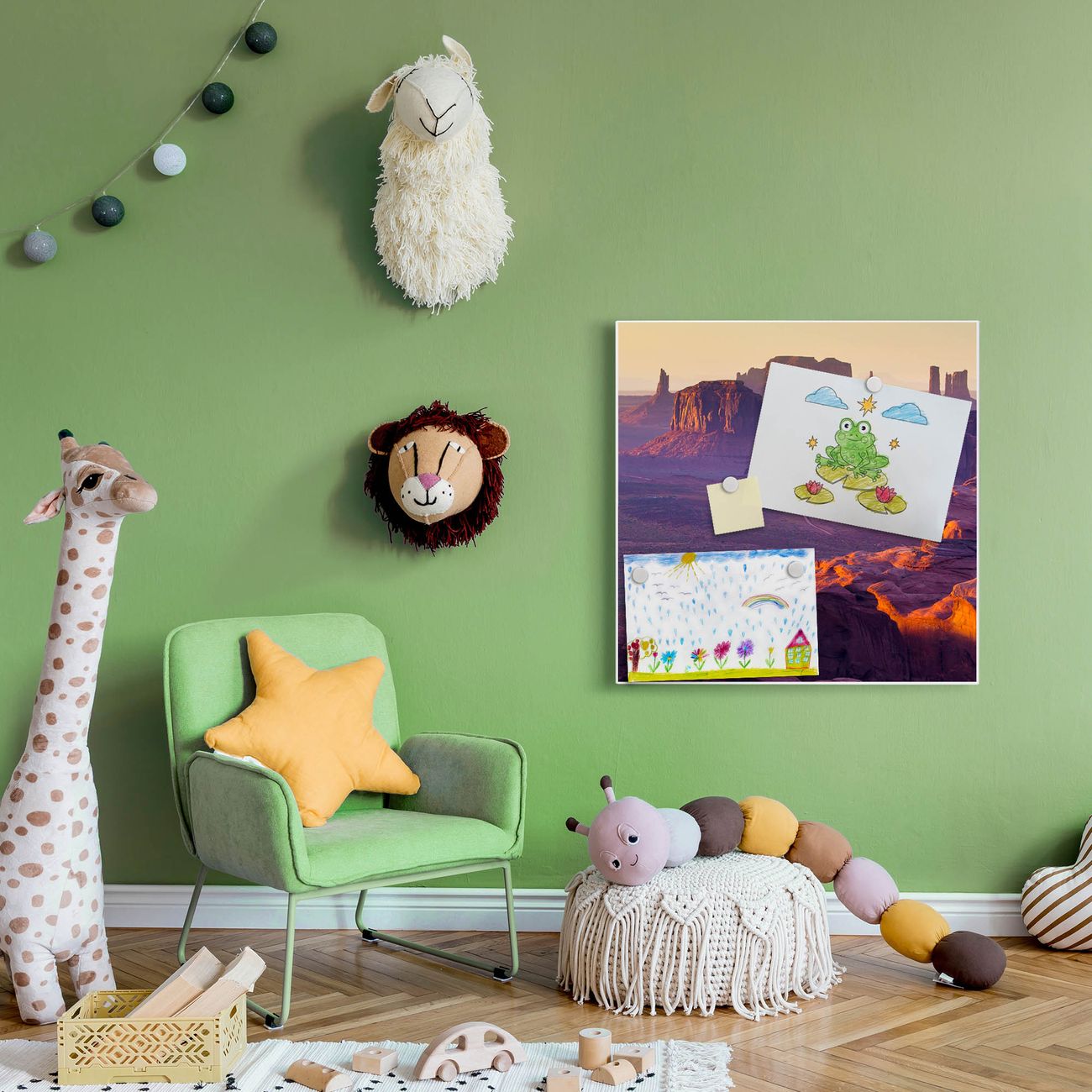 Die banjado Design Magnettafel mit Motiv Motiv Monument Valley bringt Ordnung in Ihr Zettelchaos. Fotos, Termine, Notizen oder Rezepte lassen Sich hier stilvoll mit Magneten ordnen, Sie behalten alles im Blick. An der Pinnwand halten alle handelsüblichen Magnete. Mit dieser Pinnwand aus Metall haben Sie auch ohne Notizen und Magnete ein schönes Dekoelement. Das Quadratische Format bietet Ihnen ausreichend Platz um alle wichtigen Informationen im Blick zu behalten.