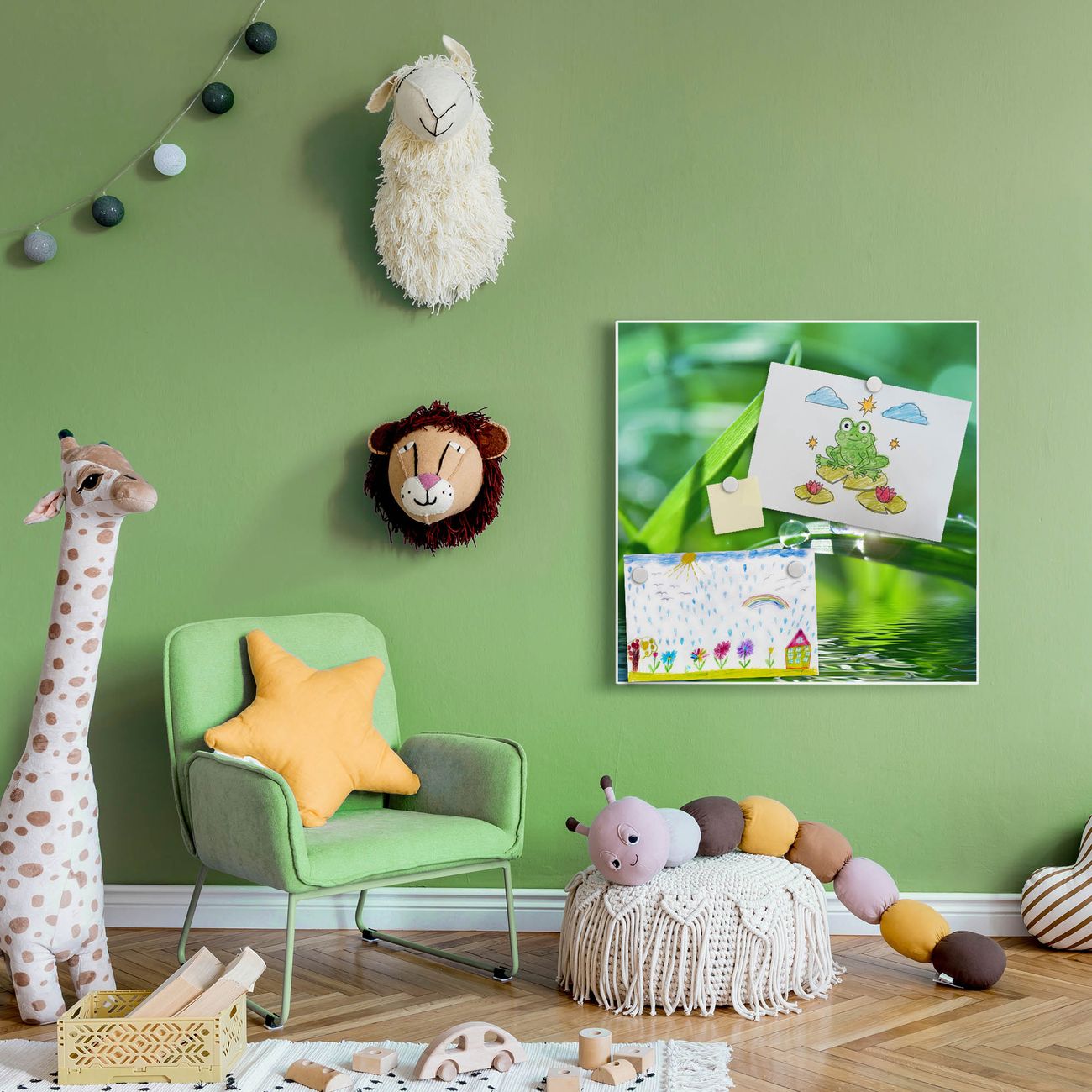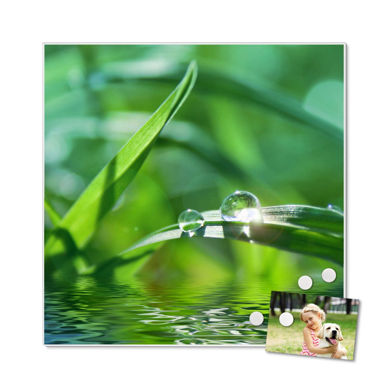 Die banjado Design Magnettafel mit Motiv Motiv Morgentau bringt Ordnung in Ihr Zettelchaos. Fotos, Termine, Notizen oder Rezepte lassen Sich hier stilvoll mit Magneten ordnen, Sie behalten alles im Blick. An der Pinnwand halten alle handelsüblichen Magnete. Mit dieser Pinnwand aus Metall haben Sie auch ohne Notizen und Magnete ein schönes Dekoelement. Das Quadratische Format bietet Ihnen ausreichend Platz um alle wichtigen Informationen im Blick zu behalten.