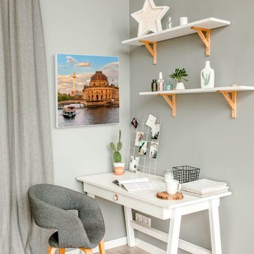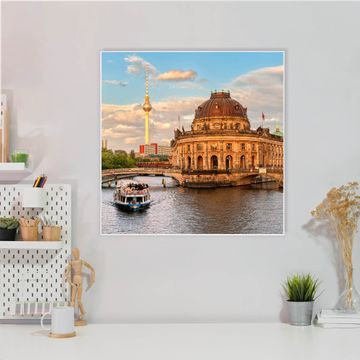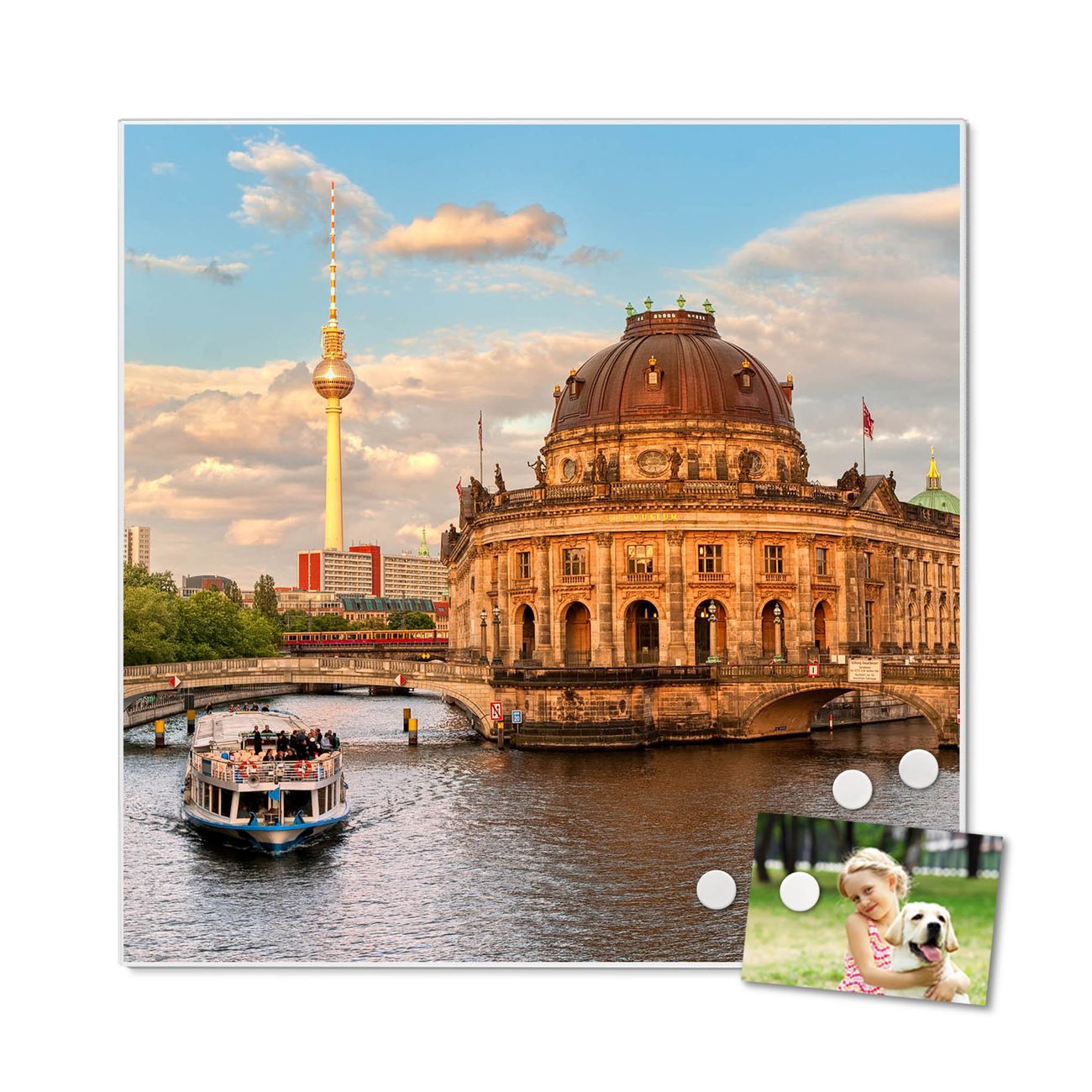 Die banjado Design Magnettafel mit Motiv Motiv Museumsinsel bringt Ordnung in Ihr Zettelchaos. Fotos, Termine, Notizen oder Rezepte lassen Sich hier stilvoll mit Magneten ordnen, Sie behalten alles im Blick. An der Pinnwand halten alle handelsüblichen Magnete. Mit dieser Pinnwand aus Metall haben Sie auch ohne Notizen und Magnete ein schönes Dekoelement. Das Quadratische Format bietet Ihnen ausreichend Platz um alle wichtigen Informationen im Blick zu behalten.