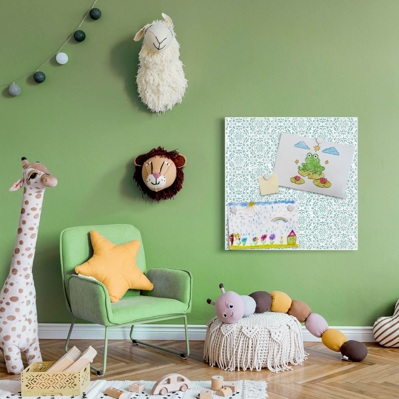 Die banjado Design Magnettafel mit Motiv Motiv Muster Getupft Blau bringt Ordnung in Ihr Zettelchaos. Fotos, Termine, Notizen oder Rezepte lassen Sich hier stilvoll mit Magneten ordnen, Sie behalten alles im Blick. An der Pinnwand halten alle handelsüblichen Magnete. Mit dieser Pinnwand aus Metall haben Sie auch ohne Notizen und Magnete ein schönes Dekoelement. Das Quadratische Format bietet Ihnen ausreichend Platz um alle wichtigen Informationen im Blick zu behalten.