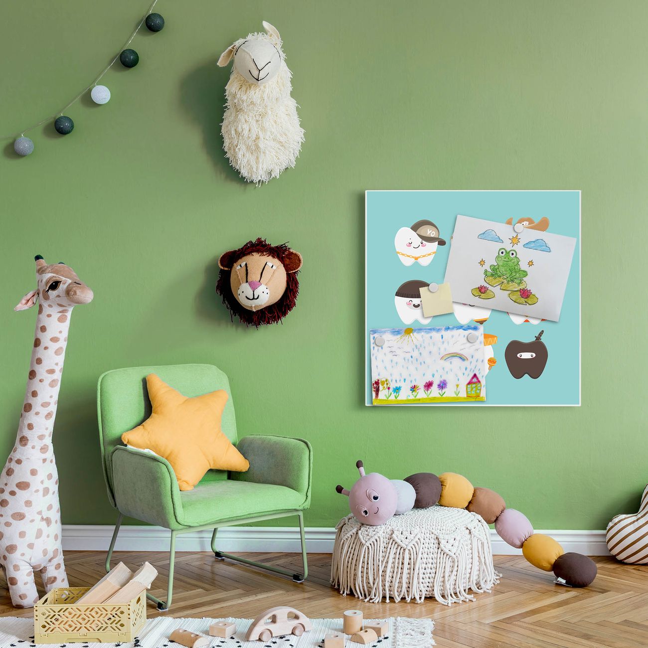 Die banjado Design Magnettafel mit Motiv Motiv Neun Zähne bringt Ordnung in Ihr Zettelchaos. Fotos, Termine, Notizen oder Rezepte lassen Sich hier stilvoll mit Magneten ordnen, Sie behalten alles im Blick. An der Pinnwand halten alle handelsüblichen Magnete. Mit dieser Pinnwand aus Metall haben Sie auch ohne Notizen und Magnete ein schönes Dekoelement. Das Quadratische Format bietet Ihnen ausreichend Platz um alle wichtigen Informationen im Blick zu behalten.