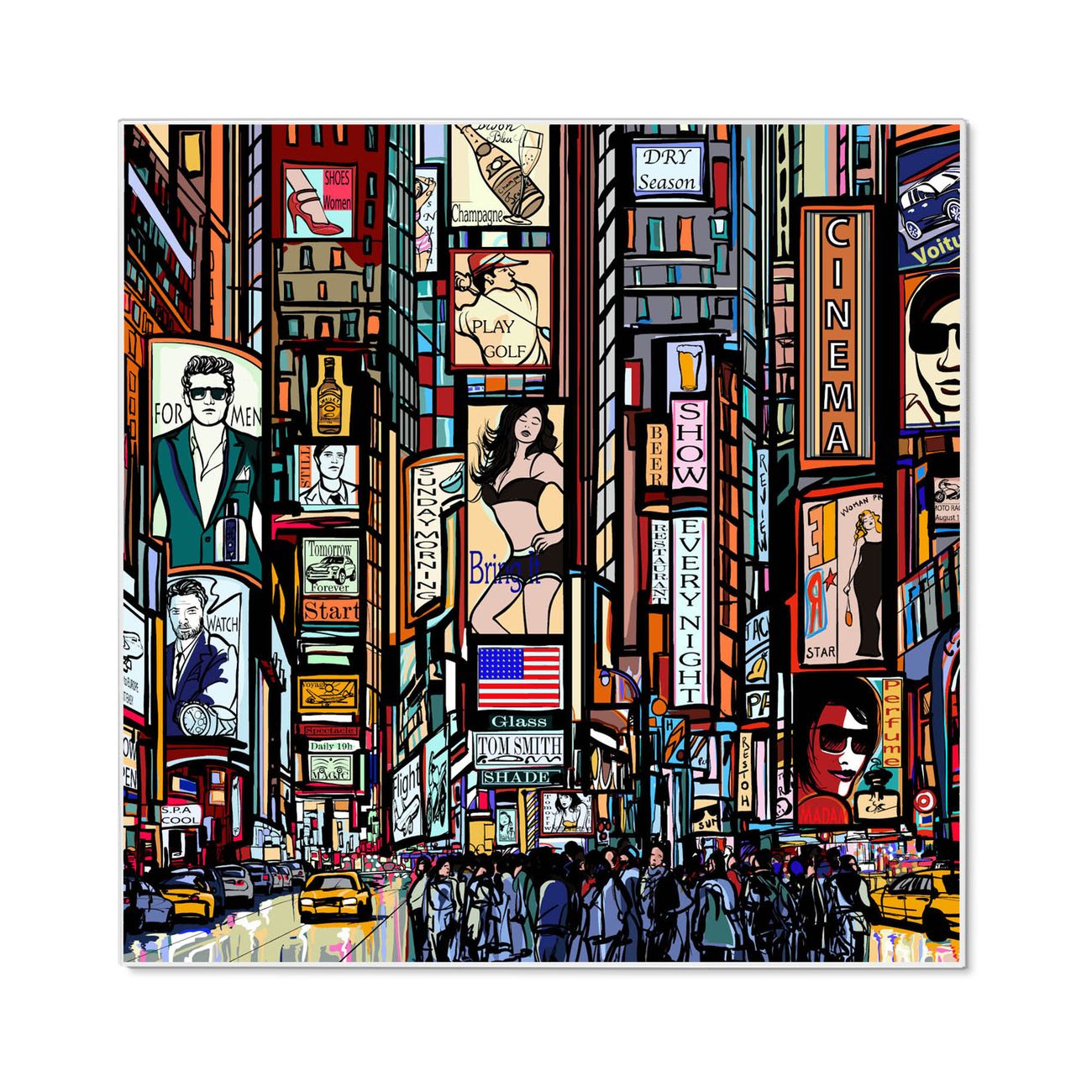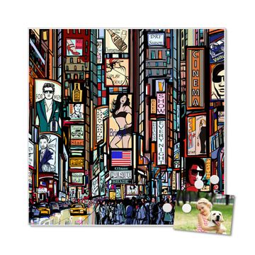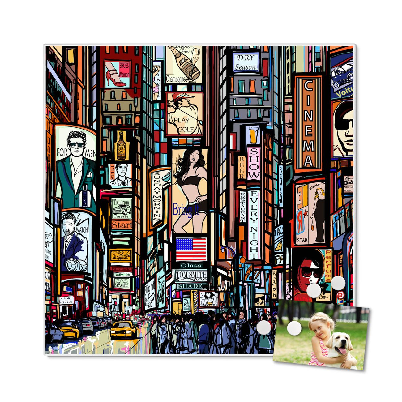 Die banjado Design Magnettafel mit Motiv Motiv New York Show bringt Ordnung in Ihr Zettelchaos. Fotos, Termine, Notizen oder Rezepte lassen Sich hier stilvoll mit Magneten ordnen, Sie behalten alles im Blick. An der Pinnwand halten alle handelsüblichen Magnete. Mit dieser Pinnwand aus Metall haben Sie auch ohne Notizen und Magnete ein schönes Dekoelement. Das Quadratische Format bietet Ihnen ausreichend Platz um alle wichtigen Informationen im Blick zu behalten.