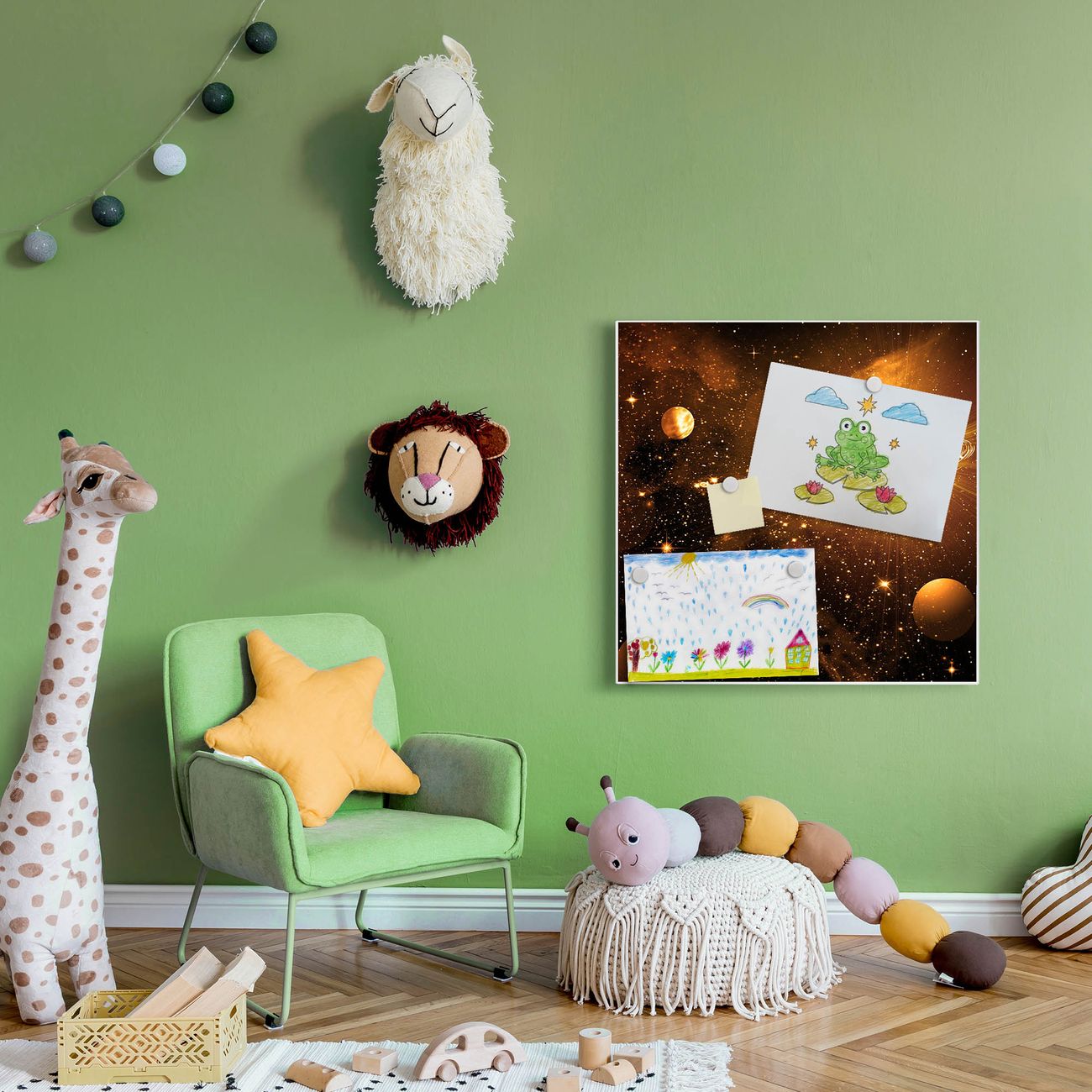 Die banjado Design Magnettafel mit Motiv Motiv Outer Space bringt Ordnung in Ihr Zettelchaos. Fotos, Termine, Notizen oder Rezepte lassen Sich hier stilvoll mit Magneten ordnen, Sie behalten alles im Blick. An der Pinnwand halten alle handelsüblichen Magnete. Mit dieser Pinnwand aus Metall haben Sie auch ohne Notizen und Magnete ein schönes Dekoelement. Das Quadratische Format bietet Ihnen ausreichend Platz um alle wichtigen Informationen im Blick zu behalten.