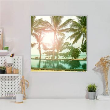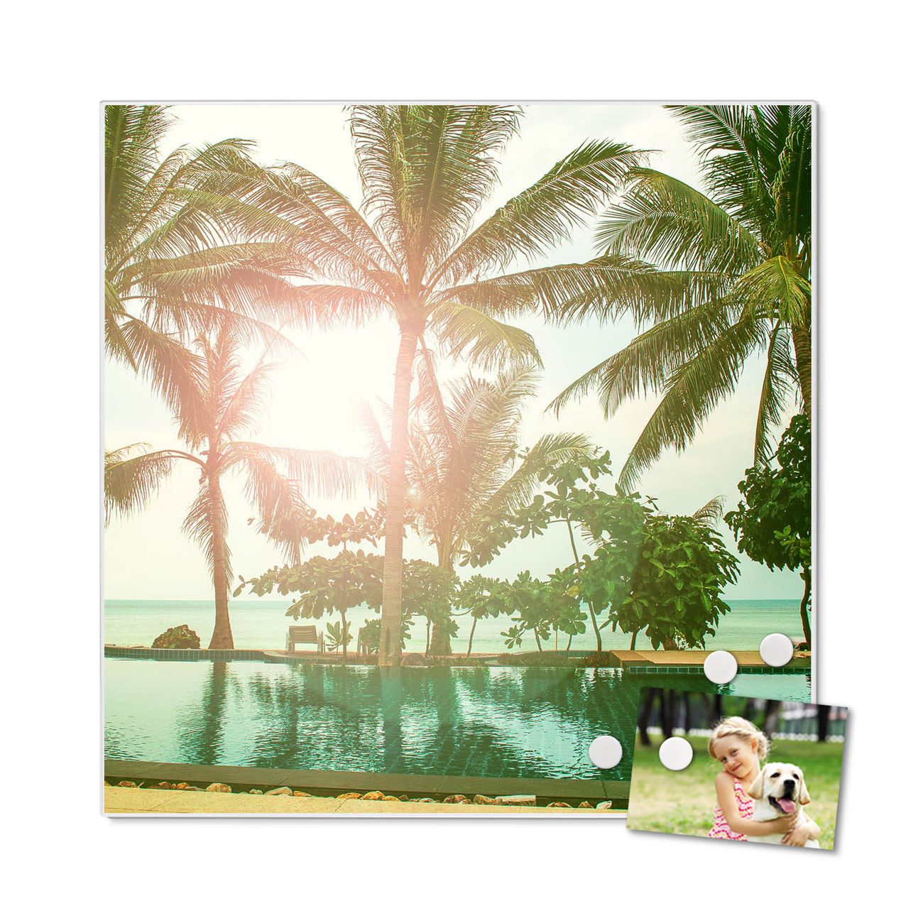 Die banjado Design Magnettafel mit Motiv Motiv Palmen bringt Ordnung in Ihr Zettelchaos. Fotos, Termine, Notizen oder Rezepte lassen Sich hier stilvoll mit Magneten ordnen, Sie behalten alles im Blick. An der Pinnwand halten alle handelsüblichen Magnete. Mit dieser Pinnwand aus Metall haben Sie auch ohne Notizen und Magnete ein schönes Dekoelement. Das Quadratische Format bietet Ihnen ausreichend Platz um alle wichtigen Informationen im Blick zu behalten.
