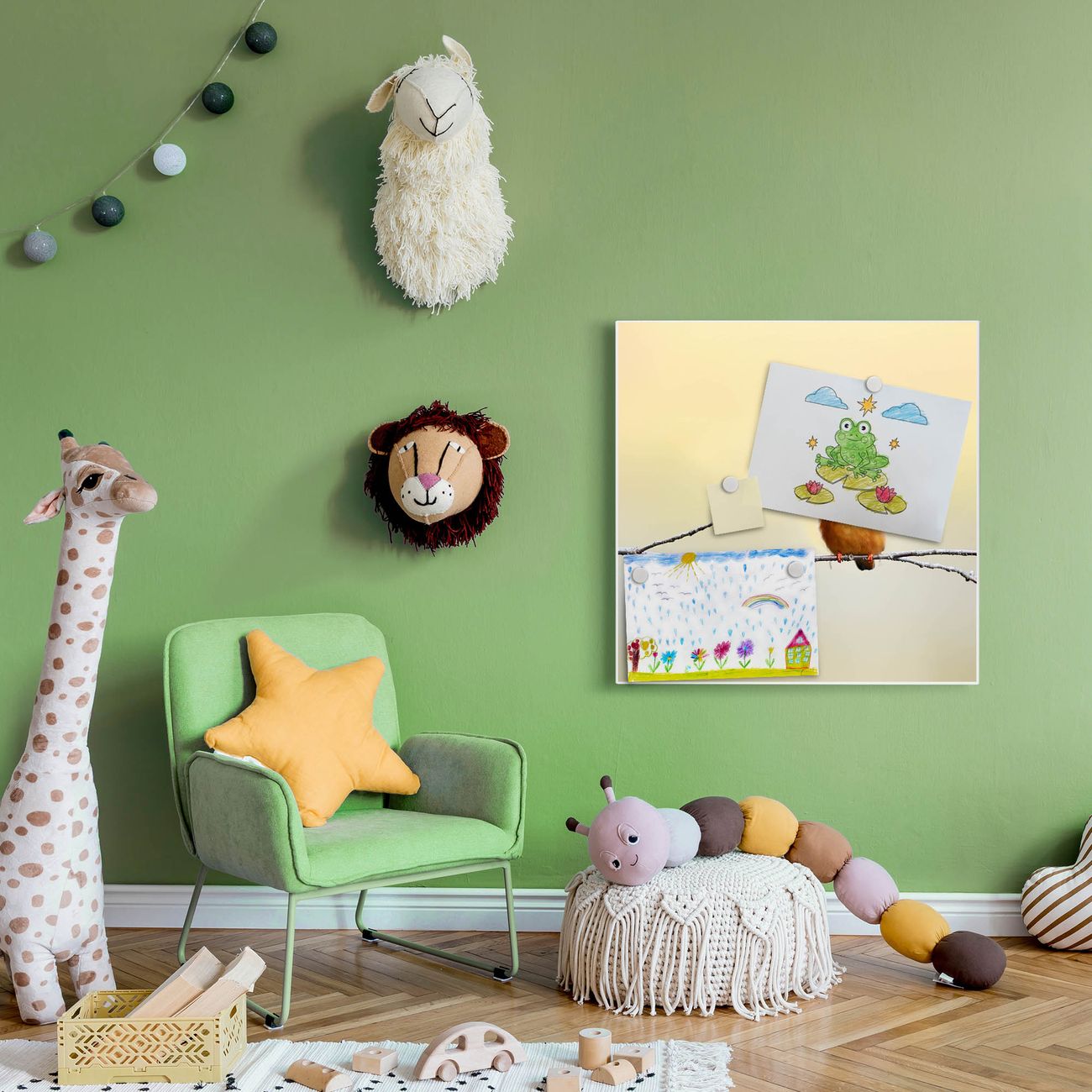 Die banjado Design Magnettafel mit Motiv Motiv Pause bringt Ordnung in Ihr Zettelchaos. Fotos, Termine, Notizen oder Rezepte lassen Sich hier stilvoll mit Magneten ordnen, Sie behalten alles im Blick. An der Pinnwand halten alle handelsüblichen Magnete. Mit dieser Pinnwand aus Metall haben Sie auch ohne Notizen und Magnete ein schönes Dekoelement. Das Quadratische Format bietet Ihnen ausreichend Platz um alle wichtigen Informationen im Blick zu behalten.