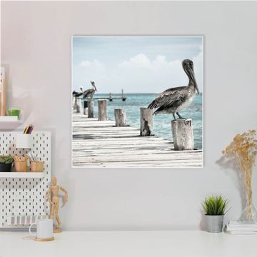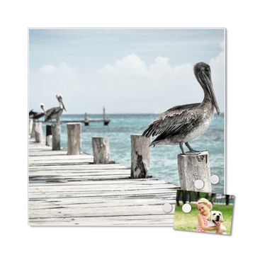 Die banjado Design Magnettafel mit Motiv Motiv Pelikane bringt Ordnung in Ihr Zettelchaos. Fotos, Termine, Notizen oder Rezepte lassen Sich hier stilvoll mit Magneten ordnen, Sie behalten alles im Blick. An der Pinnwand halten alle handelsüblichen Magnete. Mit dieser Pinnwand aus Metall haben Sie auch ohne Notizen und Magnete ein schönes Dekoelement. Das Quadratische Format bietet Ihnen ausreichend Platz um alle wichtigen Informationen im Blick zu behalten.