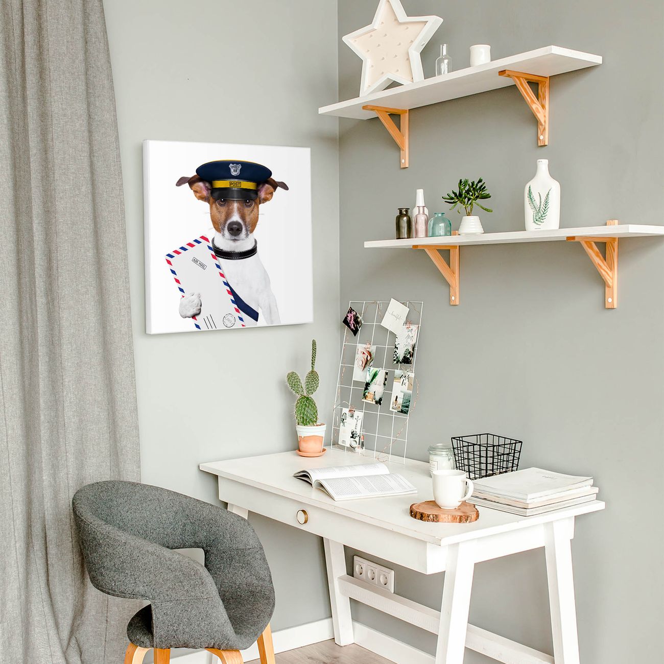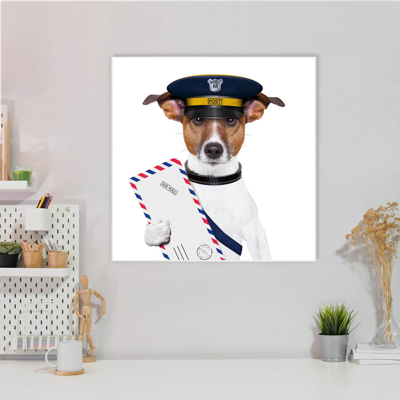 Stahl Magnettafel 50x50cm Postbote Jack Russel