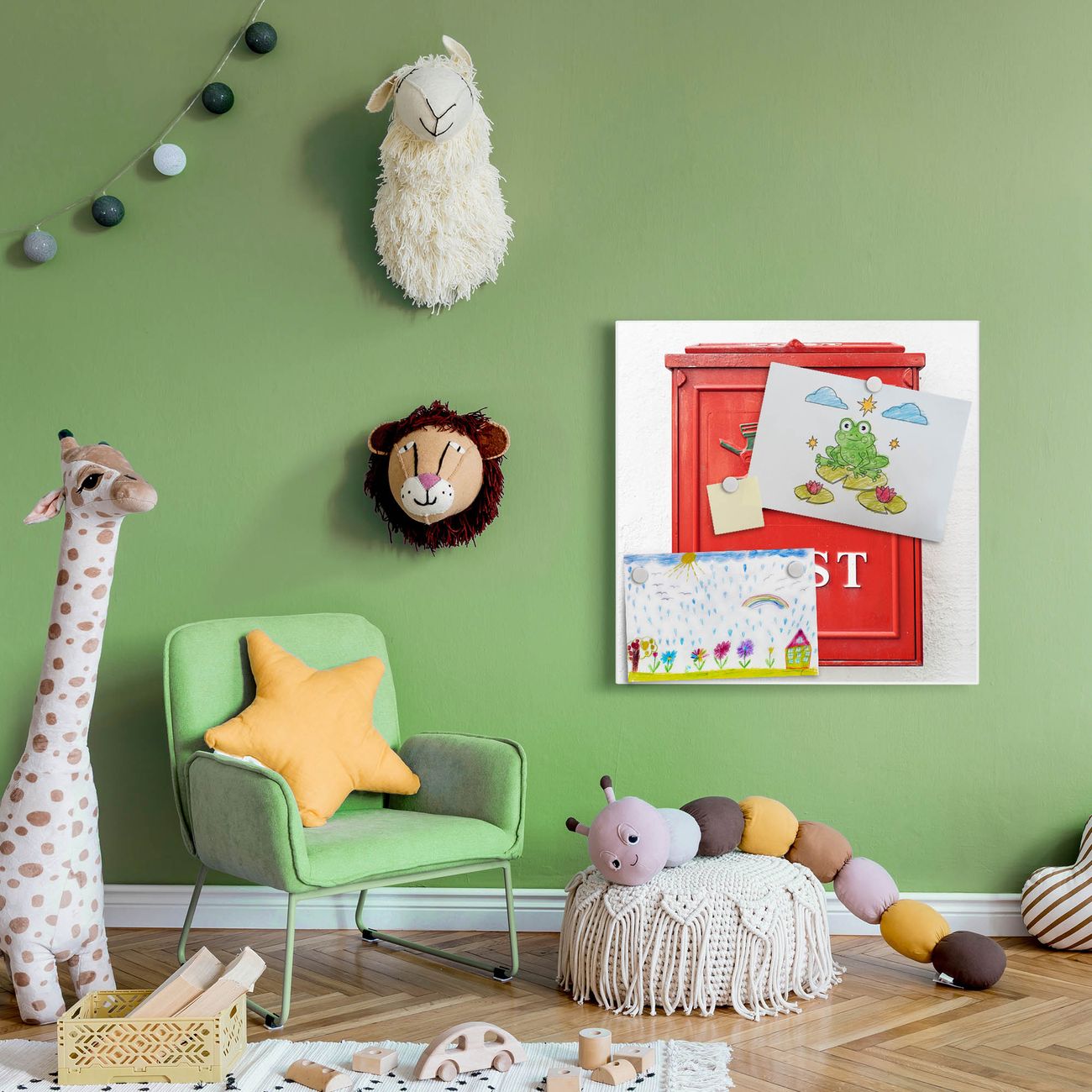 Die banjado Design Magnettafel mit Motiv Motiv Postkasten Nostalgie bringt Ordnung in Ihr Zettelchaos. Fotos, Termine, Notizen oder Rezepte lassen Sich hier stilvoll mit Magneten ordnen, Sie behalten alles im Blick. An der Pinnwand halten alle handelsüblichen Magnete. Mit dieser Pinnwand aus Metall haben Sie auch ohne Notizen und Magnete ein schönes Dekoelement. Das Quadratische Format bietet Ihnen ausreichend Platz um alle wichtigen Informationen im Blick zu behalten.