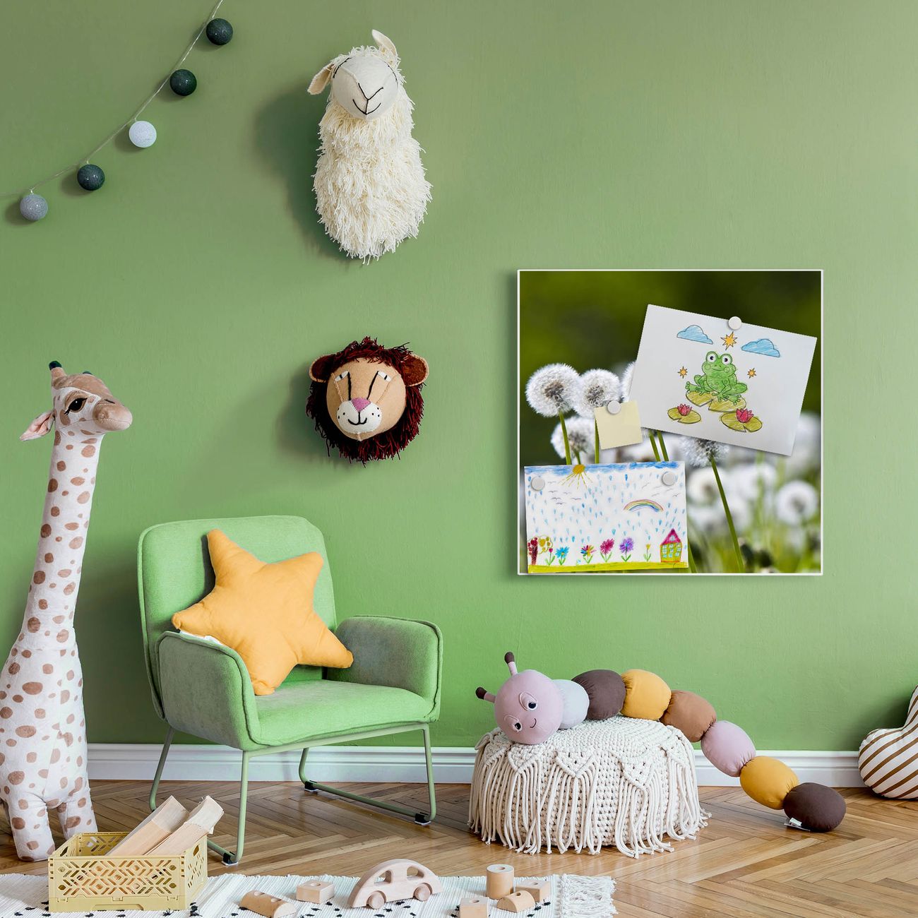 Die banjado Design Magnettafel mit Motiv Motiv Pusteblumenwiese bringt Ordnung in Ihr Zettelchaos. Fotos, Termine, Notizen oder Rezepte lassen Sich hier stilvoll mit Magneten ordnen, Sie behalten alles im Blick. An der Pinnwand halten alle handelsüblichen Magnete. Mit dieser Pinnwand aus Metall haben Sie auch ohne Notizen und Magnete ein schönes Dekoelement. Das Quadratische Format bietet Ihnen ausreichend Platz um alle wichtigen Informationen im Blick zu behalten.
