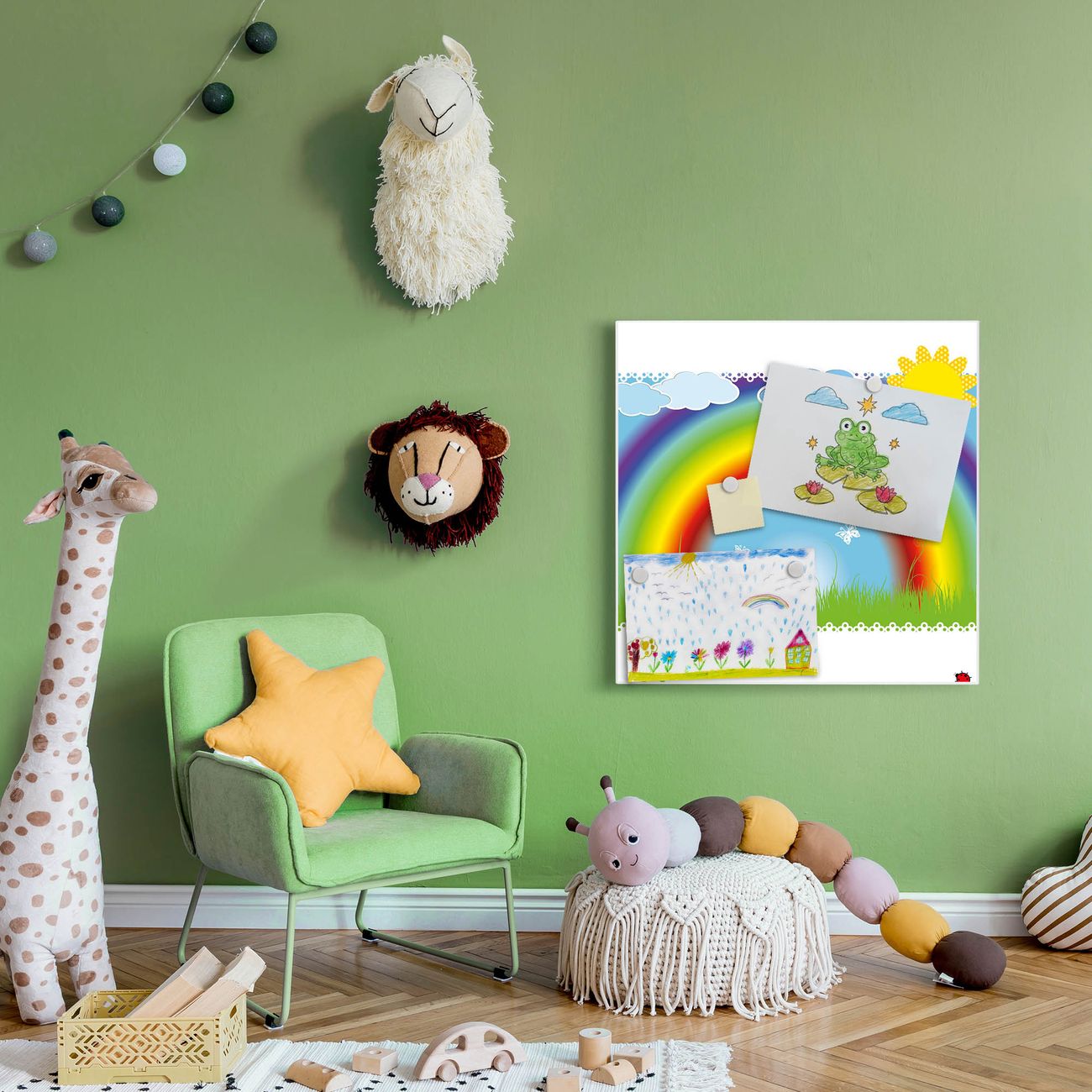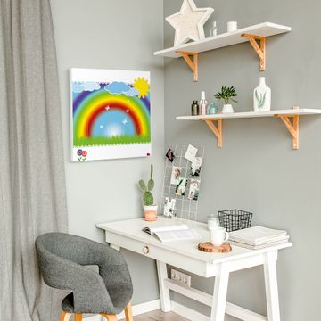 Die banjado Design Magnettafel mit Motiv Motiv Regenbogen bringt Ordnung in Ihr Zettelchaos. Fotos, Termine, Notizen oder Rezepte lassen Sich hier stilvoll mit Magneten ordnen, Sie behalten alles im Blick. An der Pinnwand halten alle handelsüblichen Magnete. Mit dieser Pinnwand aus Metall haben Sie auch ohne Notizen und Magnete ein schönes Dekoelement. Das Quadratische Format bietet Ihnen ausreichend Platz um alle wichtigen Informationen im Blick zu behalten.