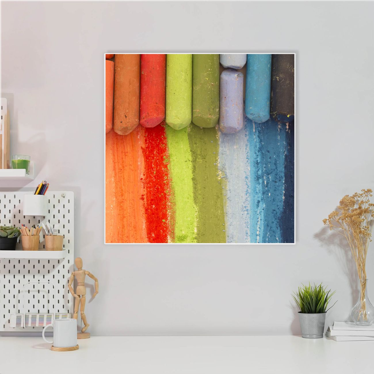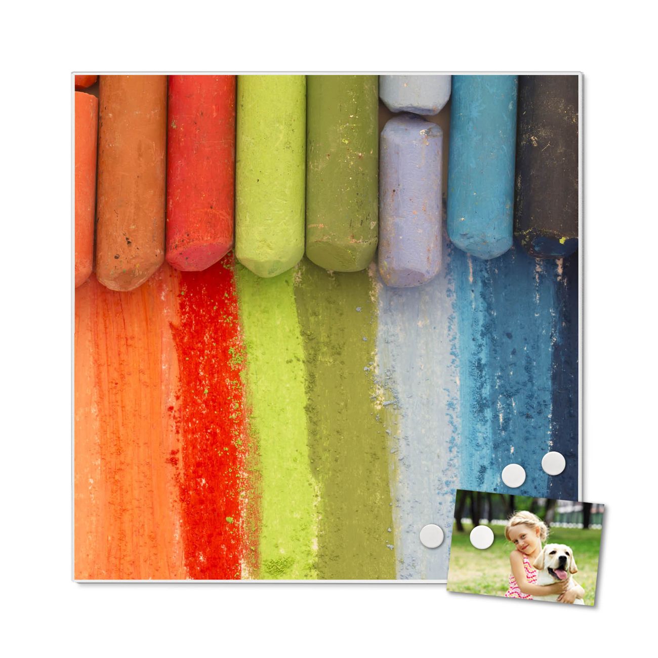Stahl Magnettafel 50x50cm Regenbogenkreide