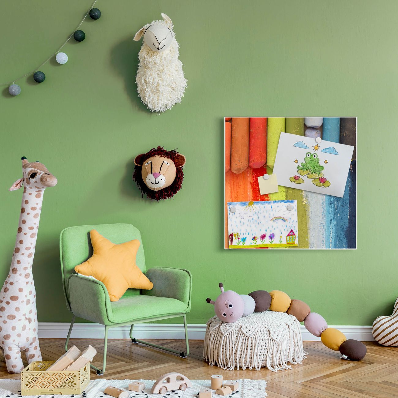 Die banjado Design Magnettafel mit Motiv Motiv Regenbogenkreide bringt Ordnung in Ihr Zettelchaos. Fotos, Termine, Notizen oder Rezepte lassen Sich hier stilvoll mit Magneten ordnen, Sie behalten alles im Blick. An der Pinnwand halten alle handelsüblichen Magnete. Mit dieser Pinnwand aus Metall haben Sie auch ohne Notizen und Magnete ein schönes Dekoelement. Das Quadratische Format bietet Ihnen ausreichend Platz um alle wichtigen Informationen im Blick zu behalten.