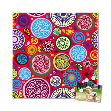 Die banjado Design Magnettafel mit Motiv Motiv Retro Kreise bringt Ordnung in Ihr Zettelchaos. Fotos, Termine, Notizen oder Rezepte lassen Sich hier stilvoll mit Magneten ordnen, Sie behalten alles im Blick. An der Pinnwand halten alle handelsüblichen Magnete. Mit dieser Pinnwand aus Metall haben Sie auch ohne Notizen und Magnete ein schönes Dekoelement. Das Quadratische Format bietet Ihnen ausreichend Platz um alle wichtigen Informationen im Blick zu behalten.