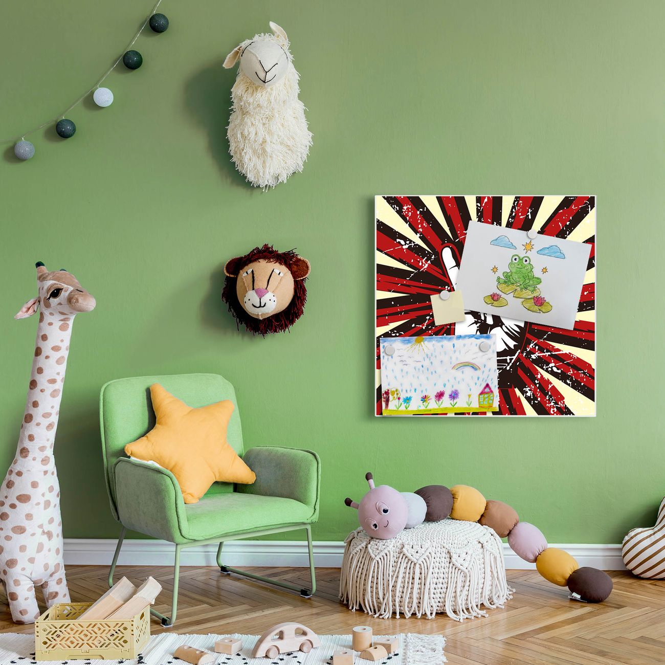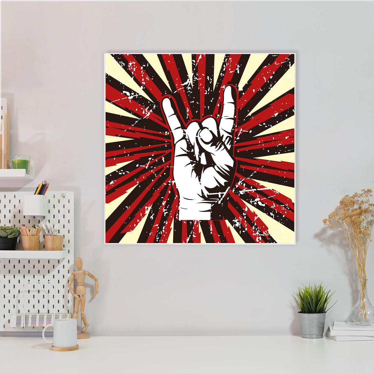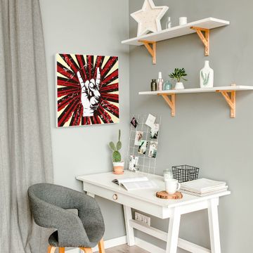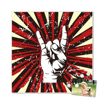 Die banjado Design Magnettafel mit Motiv Motiv Rock On bringt Ordnung in Ihr Zettelchaos. Fotos, Termine, Notizen oder Rezepte lassen Sich hier stilvoll mit Magneten ordnen, Sie behalten alles im Blick. An der Pinnwand halten alle handelsüblichen Magnete. Mit dieser Pinnwand aus Metall haben Sie auch ohne Notizen und Magnete ein schönes Dekoelement. Das Quadratische Format bietet Ihnen ausreichend Platz um alle wichtigen Informationen im Blick zu behalten.