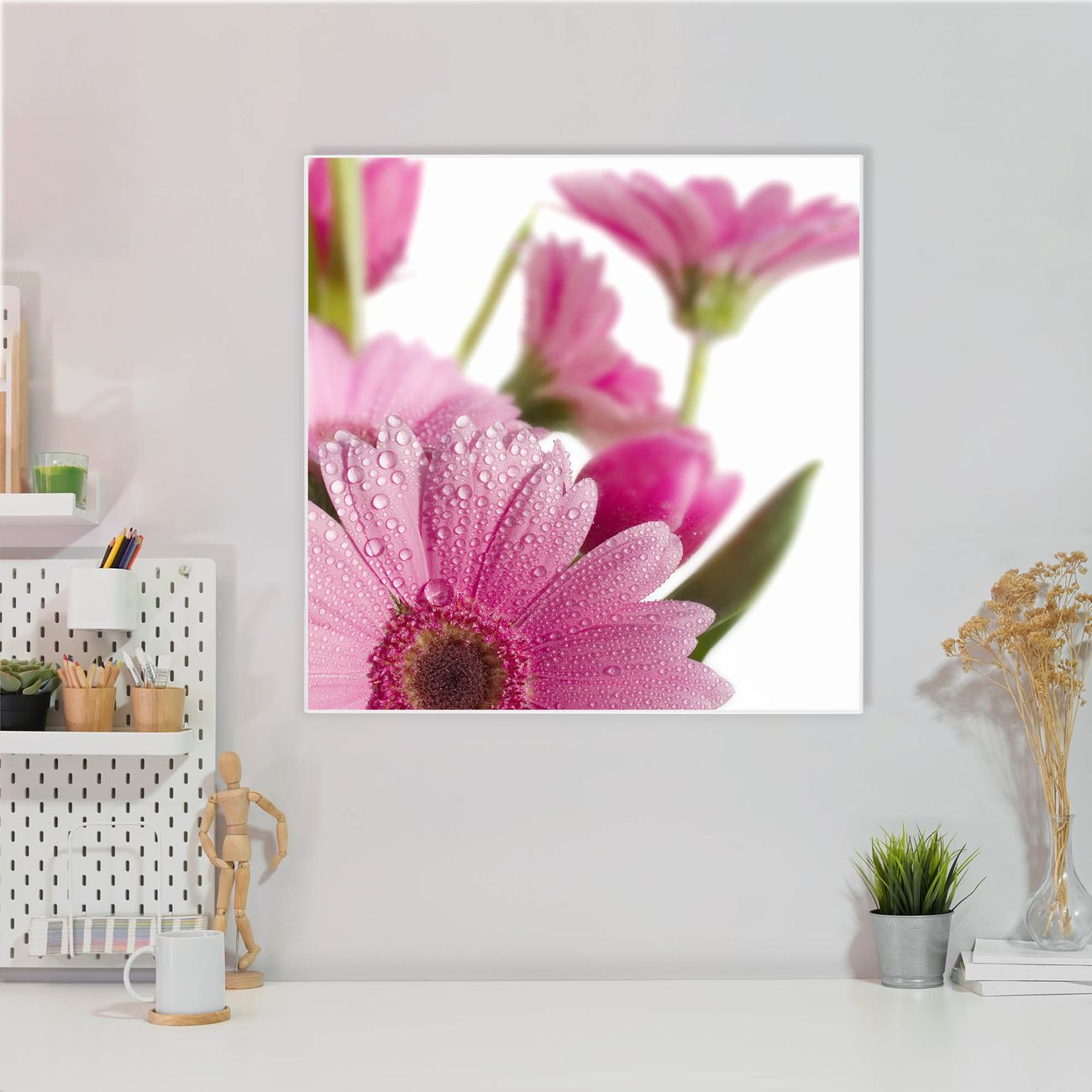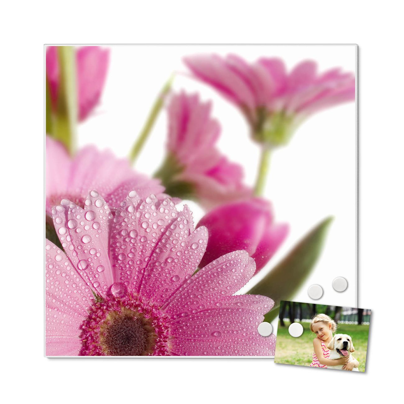 Stahl Magnettafel 50x50cm Rosa Gerbera