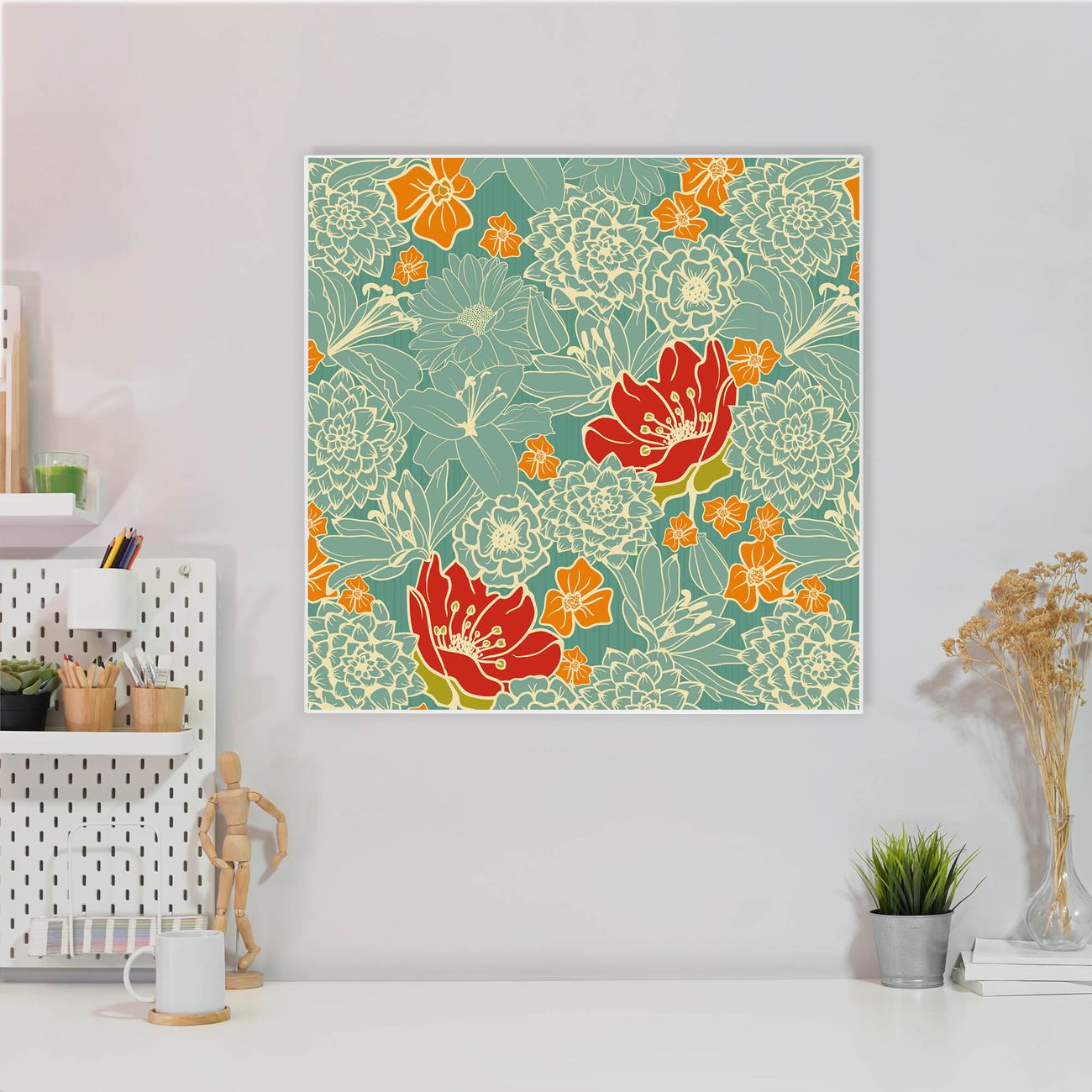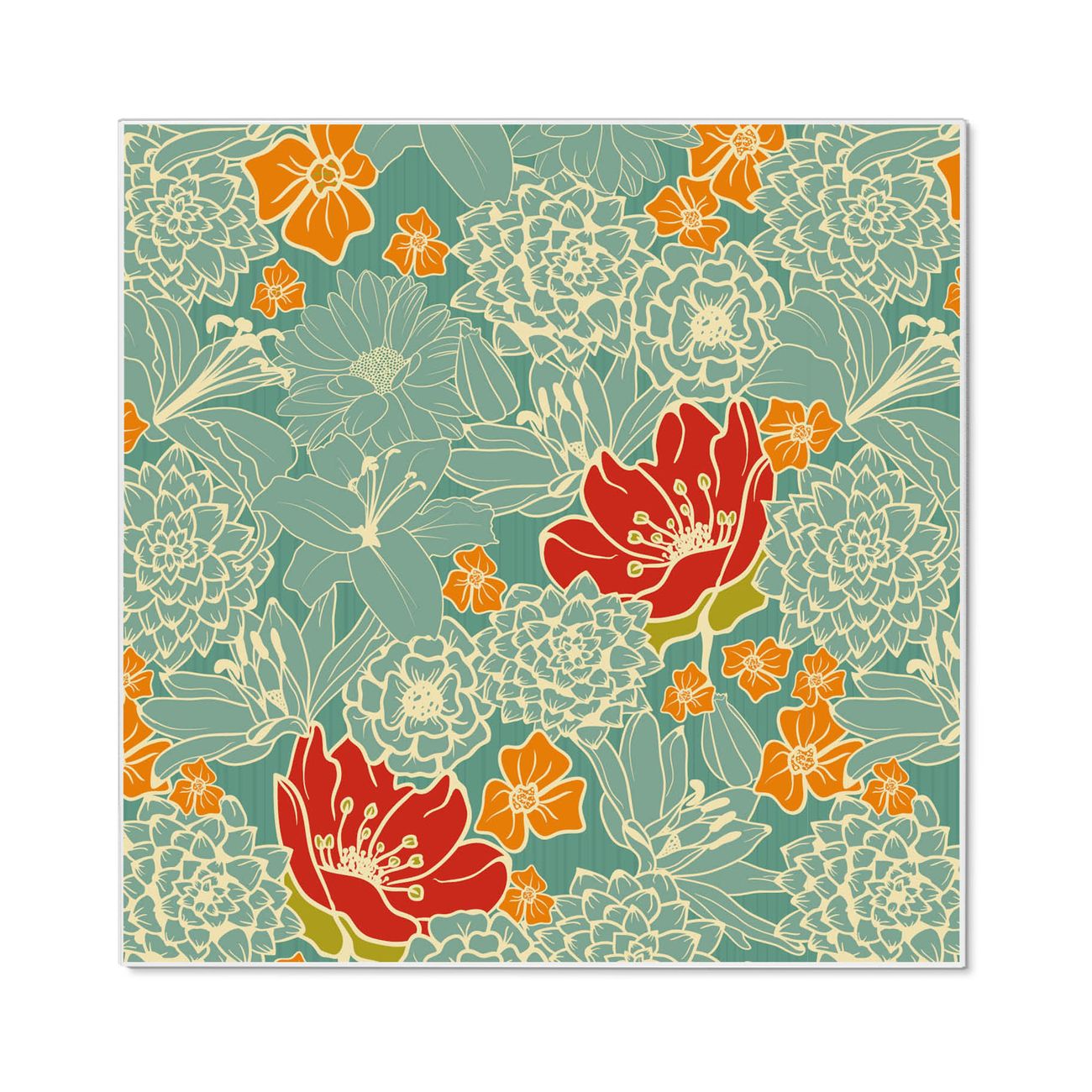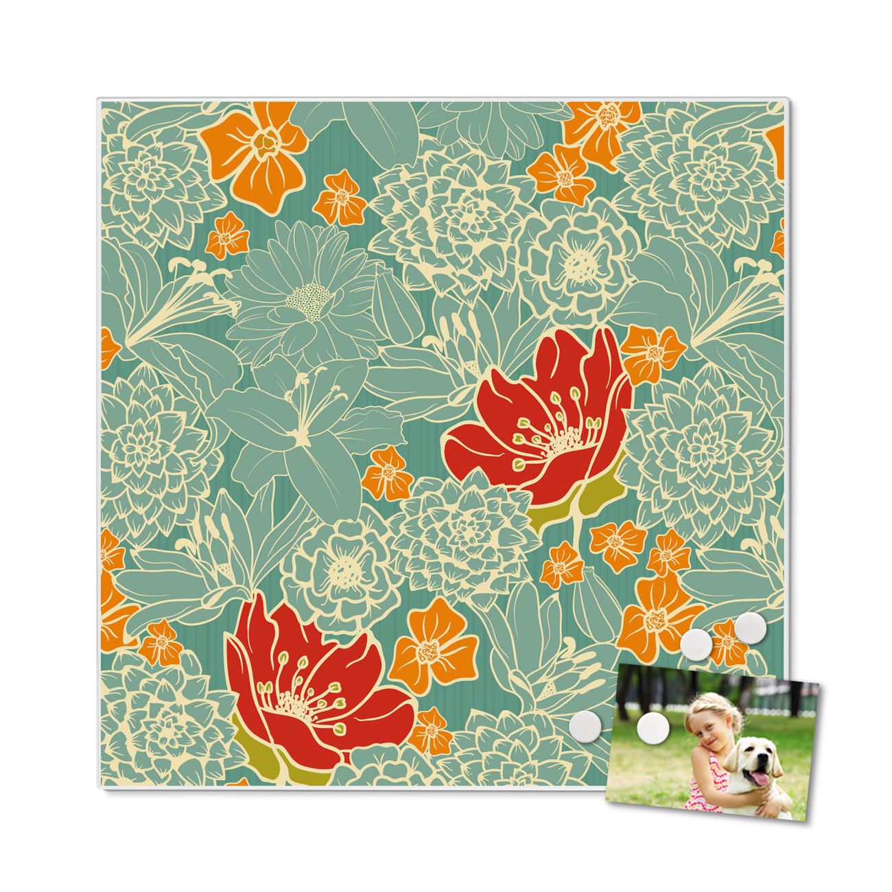 Stahl Magnettafel 50x50cm Rote Blumen