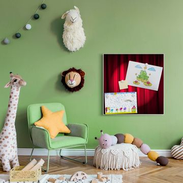 Die banjado Design Magnettafel mit Motiv Motiv Roter Vorhang bringt Ordnung in Ihr Zettelchaos. Fotos, Termine, Notizen oder Rezepte lassen Sich hier stilvoll mit Magneten ordnen, Sie behalten alles im Blick. An der Pinnwand halten alle handelsüblichen Magnete. Mit dieser Pinnwand aus Metall haben Sie auch ohne Notizen und Magnete ein schönes Dekoelement. Das Quadratische Format bietet Ihnen ausreichend Platz um alle wichtigen Informationen im Blick zu behalten.