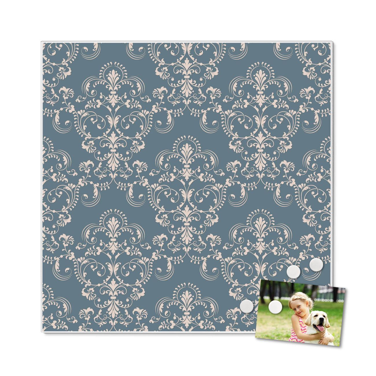 Die banjado Design Magnettafel mit Motiv Motiv Royal Creme Blau bringt Ordnung in Ihr Zettelchaos. Fotos, Termine, Notizen oder Rezepte lassen Sich hier stilvoll mit Magneten ordnen, Sie behalten alles im Blick. An der Pinnwand halten alle handelsüblichen Magnete. Mit dieser Pinnwand aus Metall haben Sie auch ohne Notizen und Magnete ein schönes Dekoelement. Das Quadratische Format bietet Ihnen ausreichend Platz um alle wichtigen Informationen im Blick zu behalten.