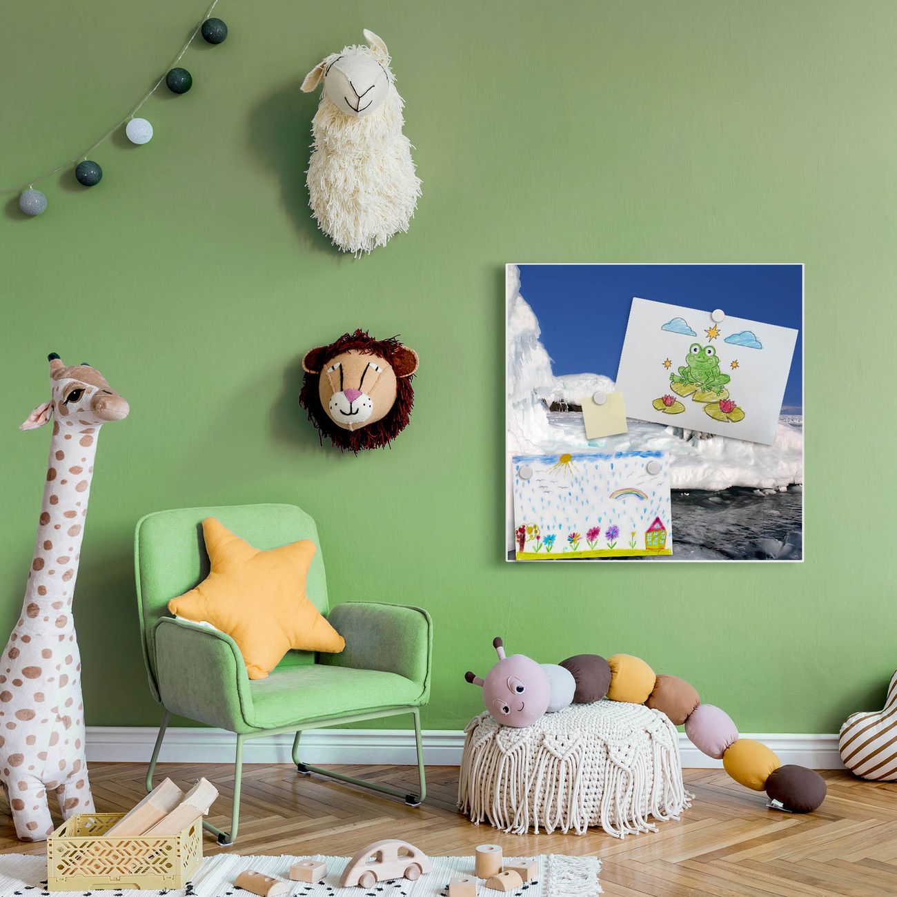 Die banjado Design Magnettafel mit Motiv Motiv Ruhender Eisbär bringt Ordnung in Ihr Zettelchaos. Fotos, Termine, Notizen oder Rezepte lassen Sich hier stilvoll mit Magneten ordnen, Sie behalten alles im Blick. An der Pinnwand halten alle handelsüblichen Magnete. Mit dieser Pinnwand aus Metall haben Sie auch ohne Notizen und Magnete ein schönes Dekoelement. Das Quadratische Format bietet Ihnen ausreichend Platz um alle wichtigen Informationen im Blick zu behalten.