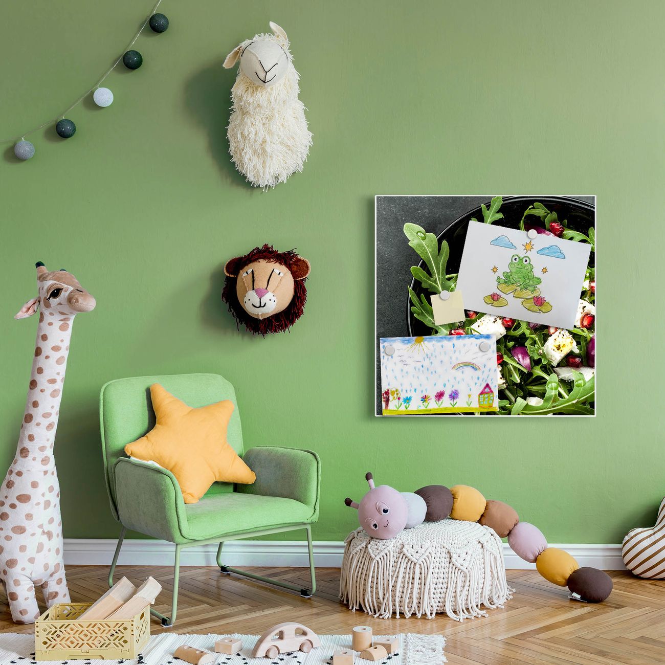 Die banjado Design Magnettafel mit Motiv Motiv Salat bringt Ordnung in Ihr Zettelchaos. Fotos, Termine, Notizen oder Rezepte lassen Sich hier stilvoll mit Magneten ordnen, Sie behalten alles im Blick. An der Pinnwand halten alle handelsüblichen Magnete. Mit dieser Pinnwand aus Metall haben Sie auch ohne Notizen und Magnete ein schönes Dekoelement. Das Quadratische Format bietet Ihnen ausreichend Platz um alle wichtigen Informationen im Blick zu behalten.