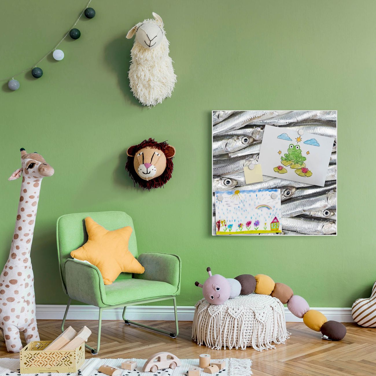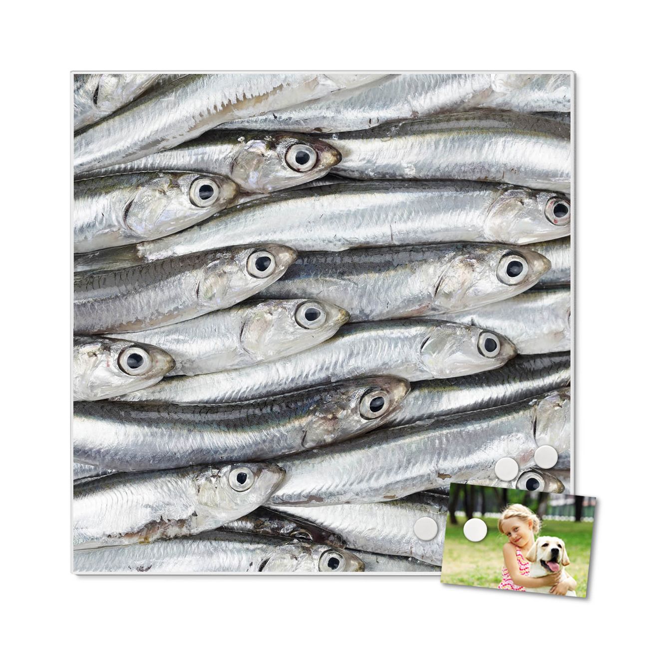 Die banjado Design Magnettafel mit Motiv Motiv Sardinen bringt Ordnung in Ihr Zettelchaos. Fotos, Termine, Notizen oder Rezepte lassen Sich hier stilvoll mit Magneten ordnen, Sie behalten alles im Blick. An der Pinnwand halten alle handelsüblichen Magnete. Mit dieser Pinnwand aus Metall haben Sie auch ohne Notizen und Magnete ein schönes Dekoelement. Das Quadratische Format bietet Ihnen ausreichend Platz um alle wichtigen Informationen im Blick zu behalten.