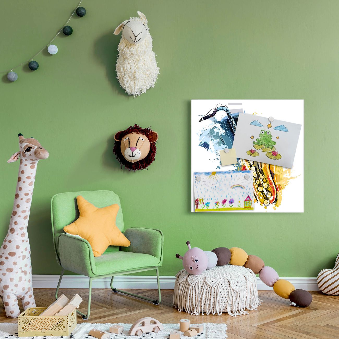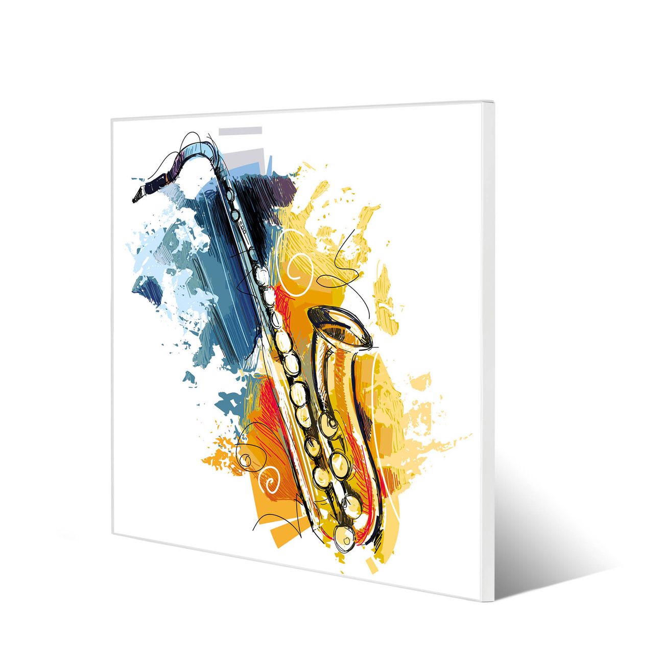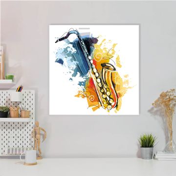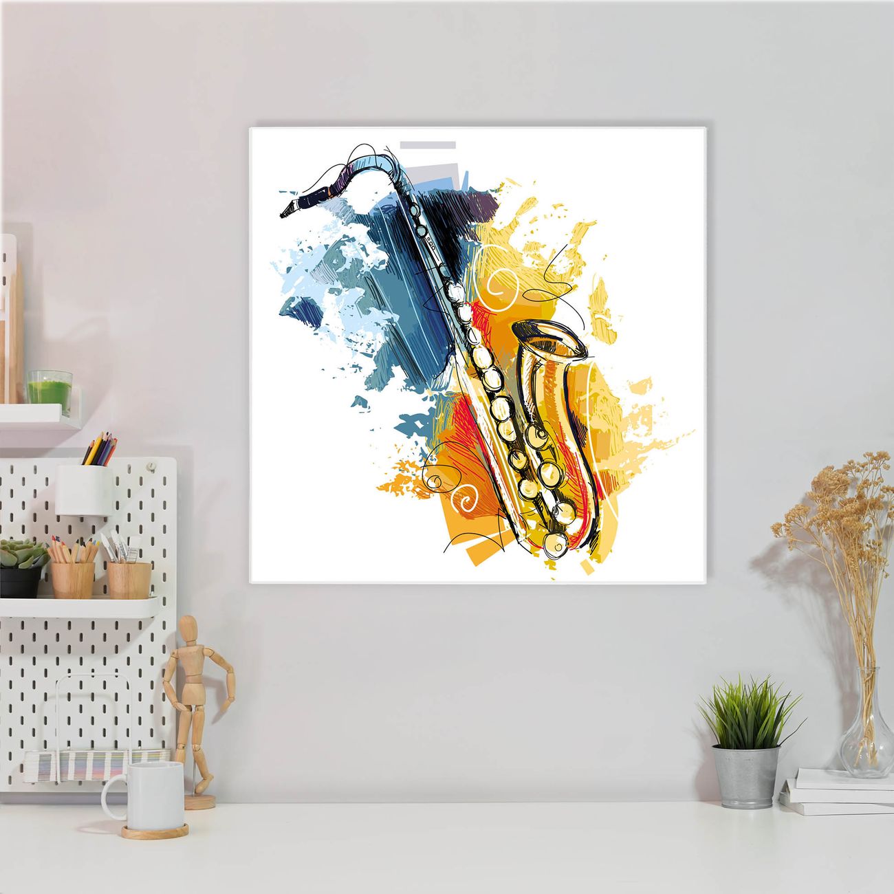 Die banjado Design Magnettafel mit Motiv Motiv Saxophon bringt Ordnung in Ihr Zettelchaos. Fotos, Termine, Notizen oder Rezepte lassen Sich hier stilvoll mit Magneten ordnen, Sie behalten alles im Blick. An der Pinnwand halten alle handelsüblichen Magnete. Mit dieser Pinnwand aus Metall haben Sie auch ohne Notizen und Magnete ein schönes Dekoelement. Das Quadratische Format bietet Ihnen ausreichend Platz um alle wichtigen Informationen im Blick zu behalten.