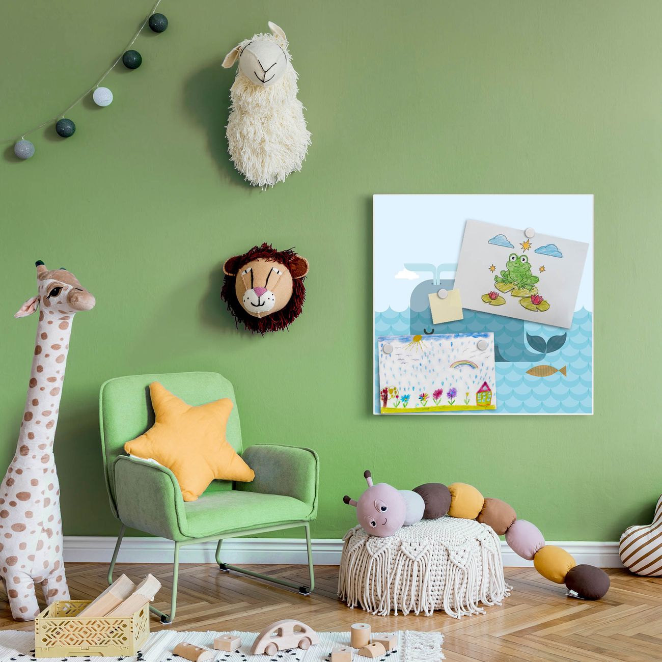 Die banjado Design Magnettafel mit Motiv Motiv Schlafender Wal bringt Ordnung in Ihr Zettelchaos. Fotos, Termine, Notizen oder Rezepte lassen Sich hier stilvoll mit Magneten ordnen, Sie behalten alles im Blick. An der Pinnwand halten alle handelsüblichen Magnete. Mit dieser Pinnwand aus Metall haben Sie auch ohne Notizen und Magnete ein schönes Dekoelement. Das Quadratische Format bietet Ihnen ausreichend Platz um alle wichtigen Informationen im Blick zu behalten.