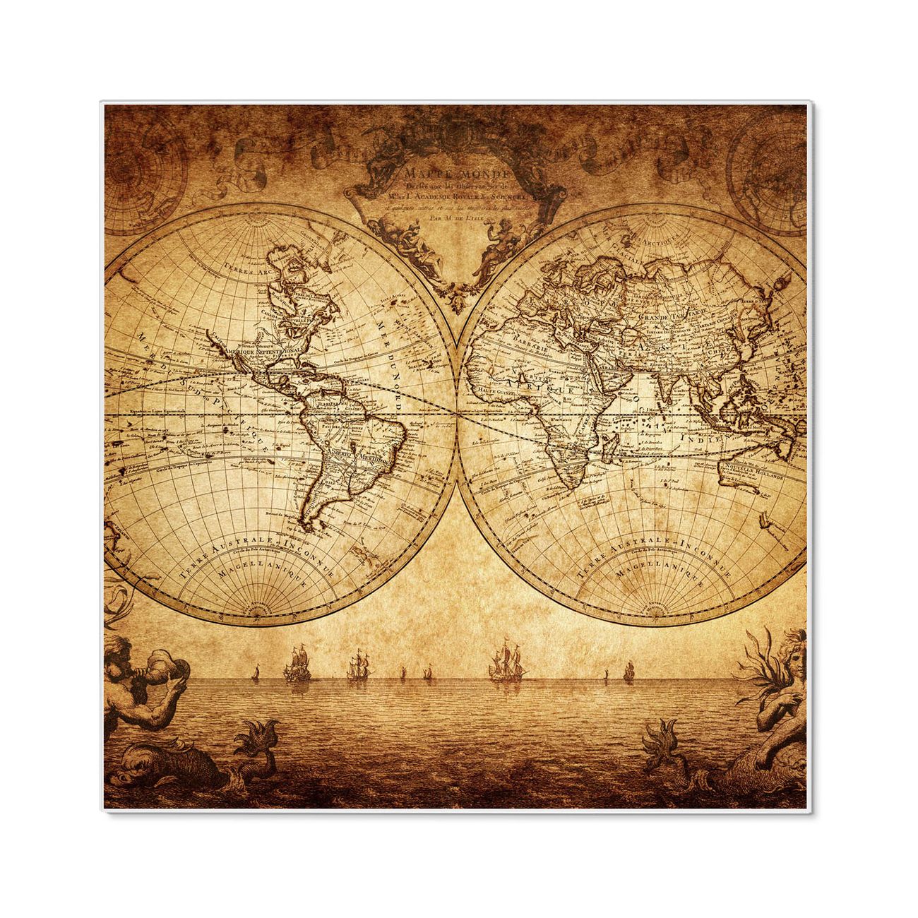 Stahl Magnettafel 50x50cm Sieben Weltmeere