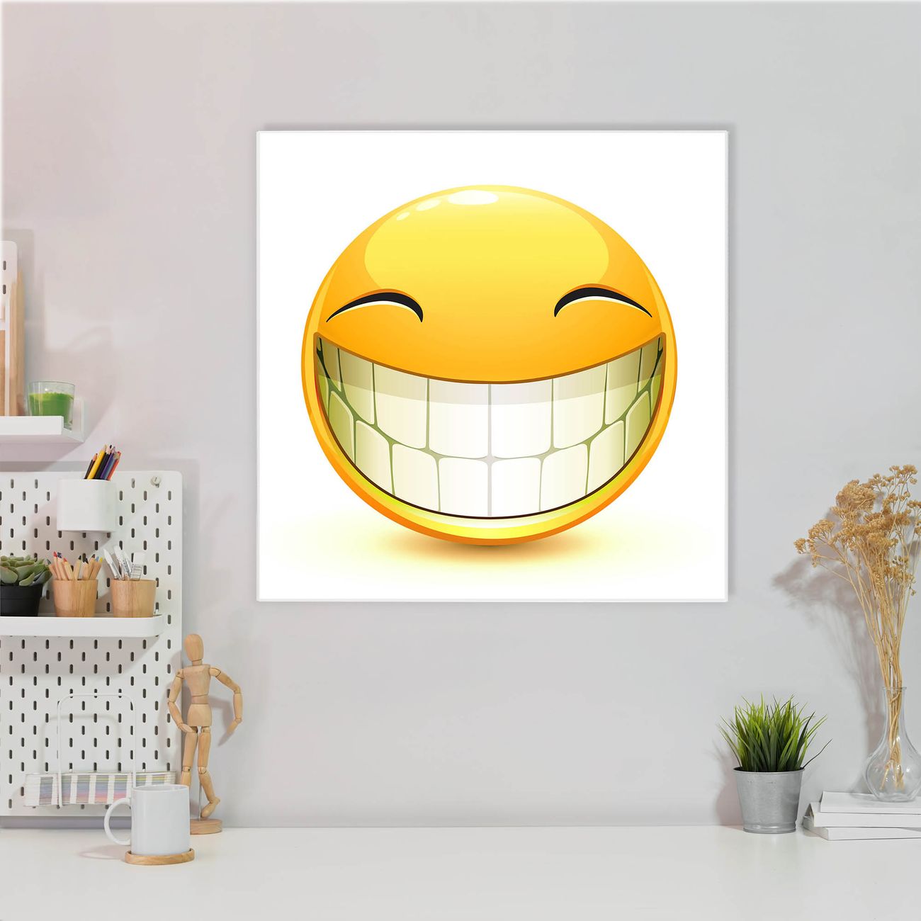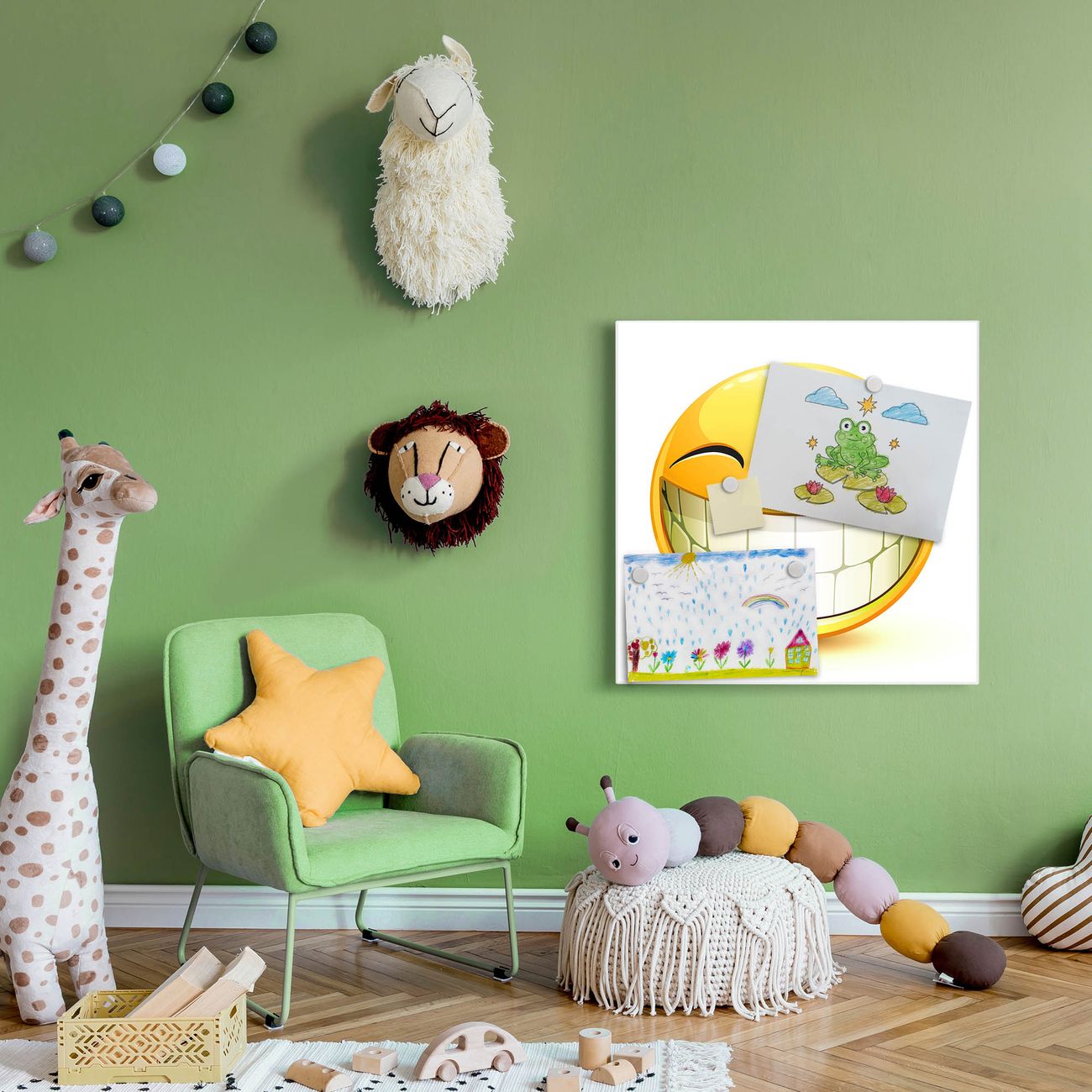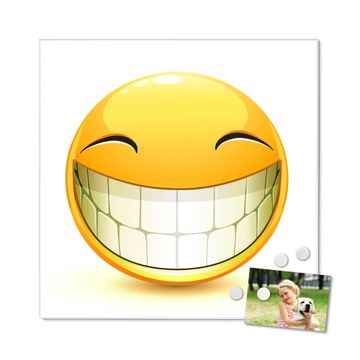 Die banjado Design Magnettafel mit Motiv Motiv Smile bringt Ordnung in Ihr Zettelchaos. Fotos, Termine, Notizen oder Rezepte lassen Sich hier stilvoll mit Magneten ordnen, Sie behalten alles im Blick. An der Pinnwand halten alle handelsüblichen Magnete. Mit dieser Pinnwand aus Metall haben Sie auch ohne Notizen und Magnete ein schönes Dekoelement. Das Quadratische Format bietet Ihnen ausreichend Platz um alle wichtigen Informationen im Blick zu behalten.