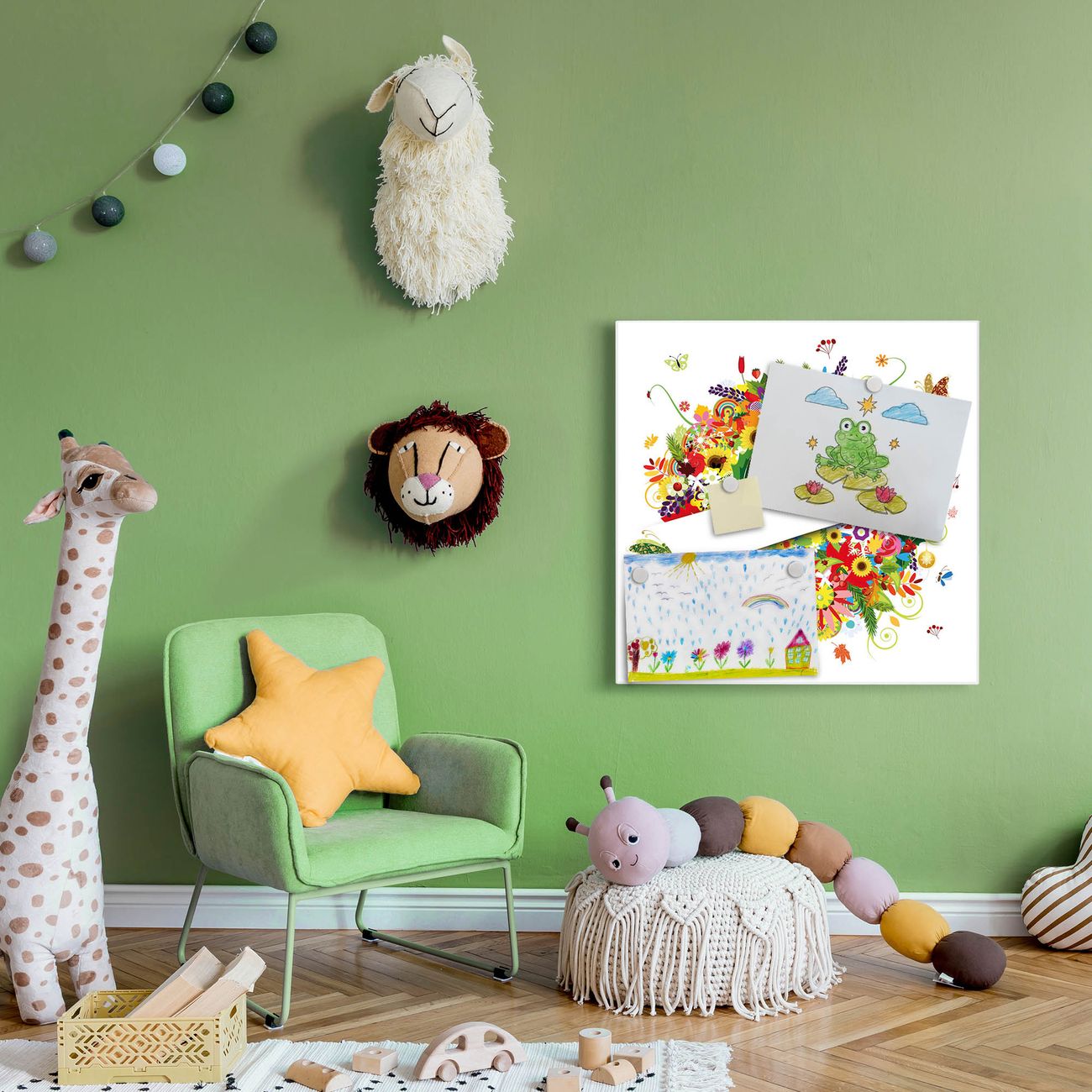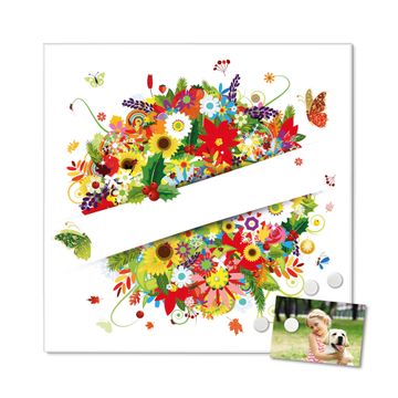 Die banjado Design Magnettafel mit Motiv Motiv Sommer bringt Ordnung in Ihr Zettelchaos. Fotos, Termine, Notizen oder Rezepte lassen Sich hier stilvoll mit Magneten ordnen, Sie behalten alles im Blick. An der Pinnwand halten alle handelsüblichen Magnete. Mit dieser Pinnwand aus Metall haben Sie auch ohne Notizen und Magnete ein schönes Dekoelement. Das Quadratische Format bietet Ihnen ausreichend Platz um alle wichtigen Informationen im Blick zu behalten.