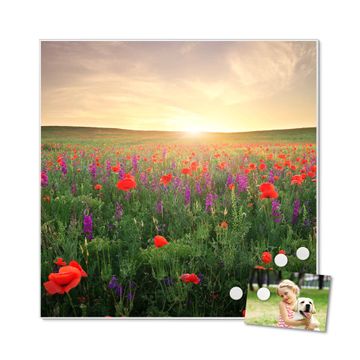 Die banjado Design Magnettafel mit Motiv Motiv Sommerfeld bringt Ordnung in Ihr Zettelchaos. Fotos, Termine, Notizen oder Rezepte lassen Sich hier stilvoll mit Magneten ordnen, Sie behalten alles im Blick. An der Pinnwand halten alle handelsüblichen Magnete. Mit dieser Pinnwand aus Metall haben Sie auch ohne Notizen und Magnete ein schönes Dekoelement. Das Quadratische Format bietet Ihnen ausreichend Platz um alle wichtigen Informationen im Blick zu behalten.