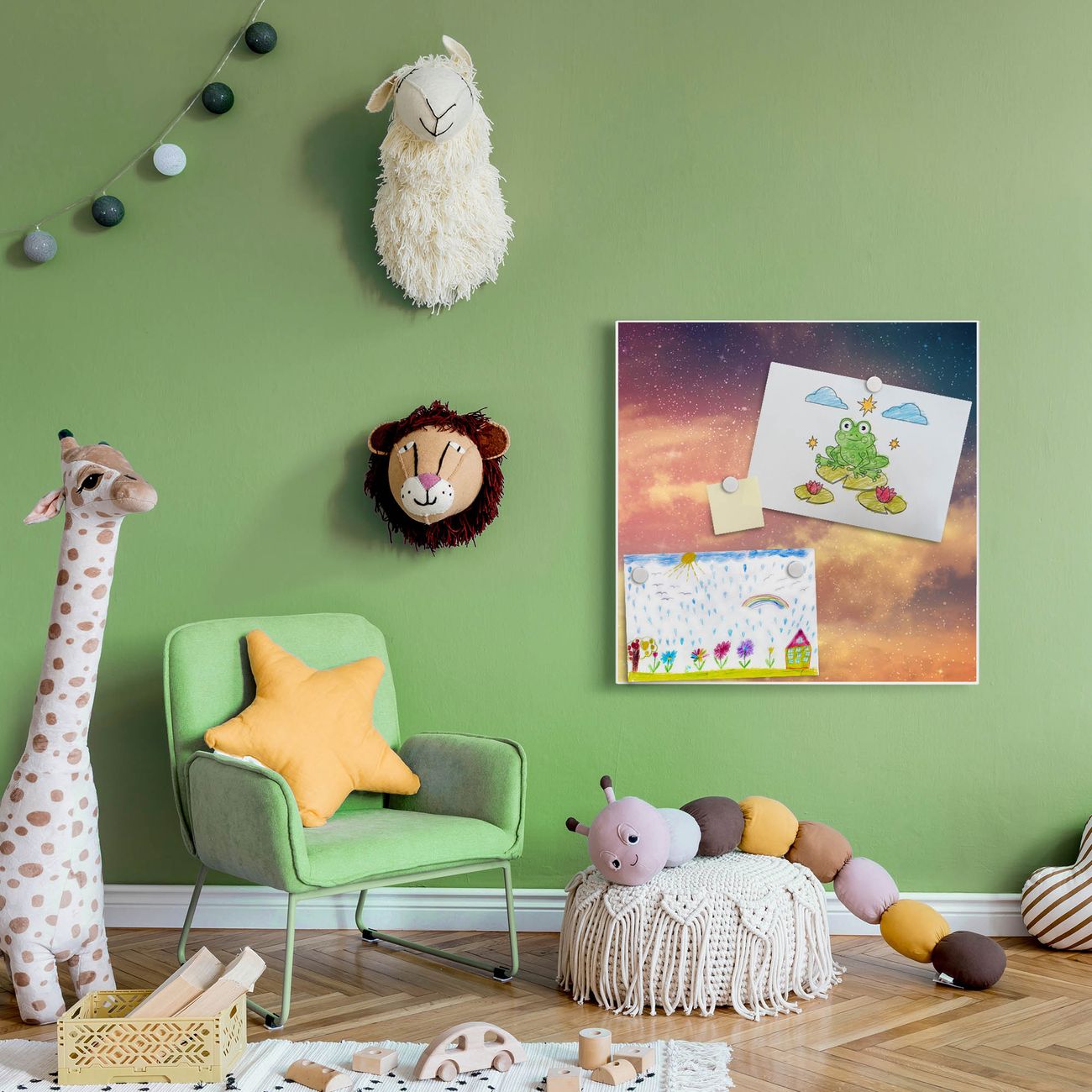 Die banjado Design Magnettafel mit Motiv Motiv Sternenhimmel bringt Ordnung in Ihr Zettelchaos. Fotos, Termine, Notizen oder Rezepte lassen Sich hier stilvoll mit Magneten ordnen, Sie behalten alles im Blick. An der Pinnwand halten alle handelsüblichen Magnete. Mit dieser Pinnwand aus Metall haben Sie auch ohne Notizen und Magnete ein schönes Dekoelement. Das Quadratische Format bietet Ihnen ausreichend Platz um alle wichtigen Informationen im Blick zu behalten.