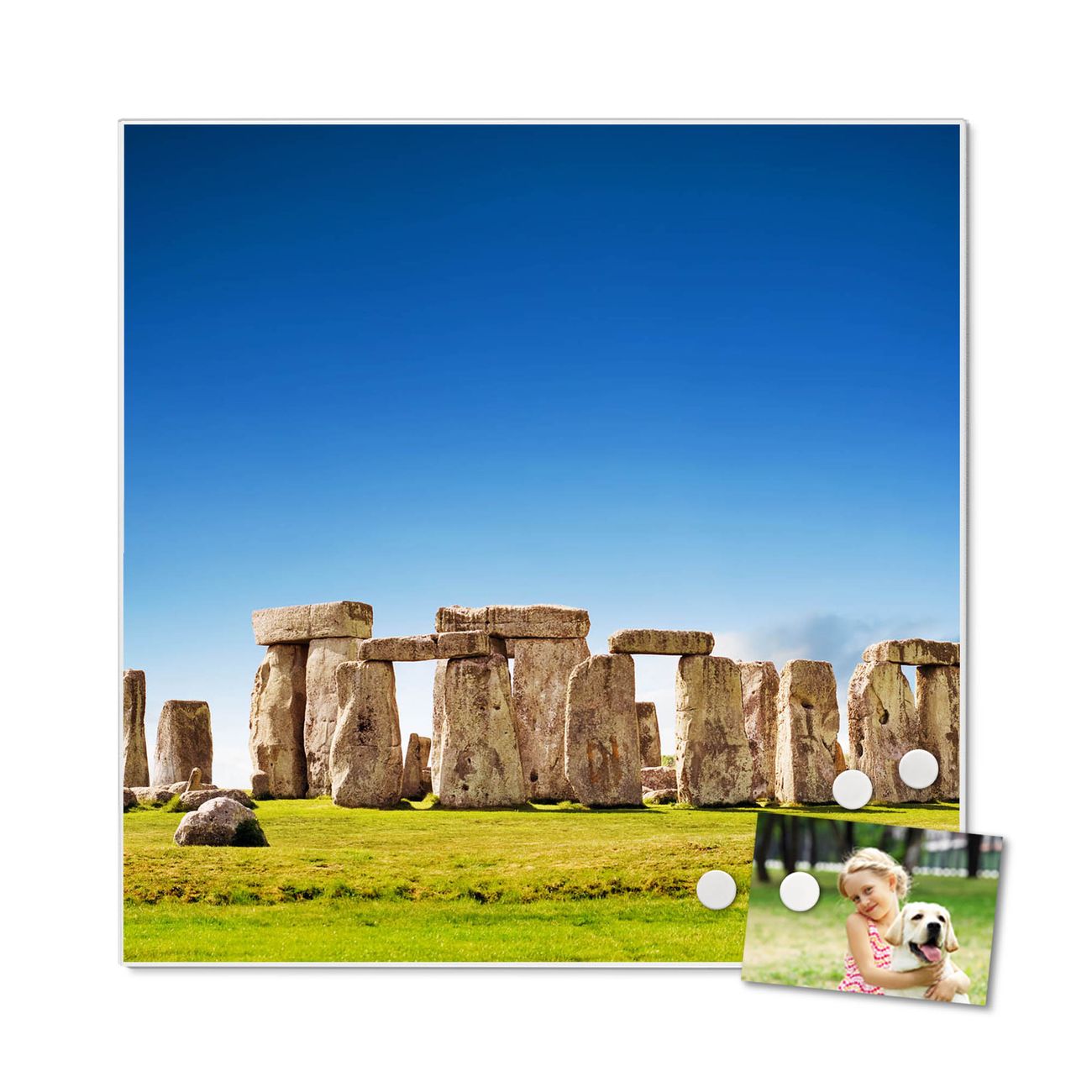 Die banjado Design Magnettafel mit Motiv Motiv Stonehenge bringt Ordnung in Ihr Zettelchaos. Fotos, Termine, Notizen oder Rezepte lassen Sich hier stilvoll mit Magneten ordnen, Sie behalten alles im Blick. An der Pinnwand halten alle handelsüblichen Magnete. Mit dieser Pinnwand aus Metall haben Sie auch ohne Notizen und Magnete ein schönes Dekoelement. Das Quadratische Format bietet Ihnen ausreichend Platz um alle wichtigen Informationen im Blick zu behalten.